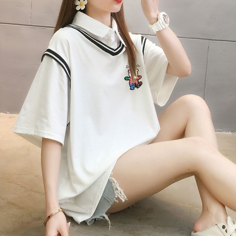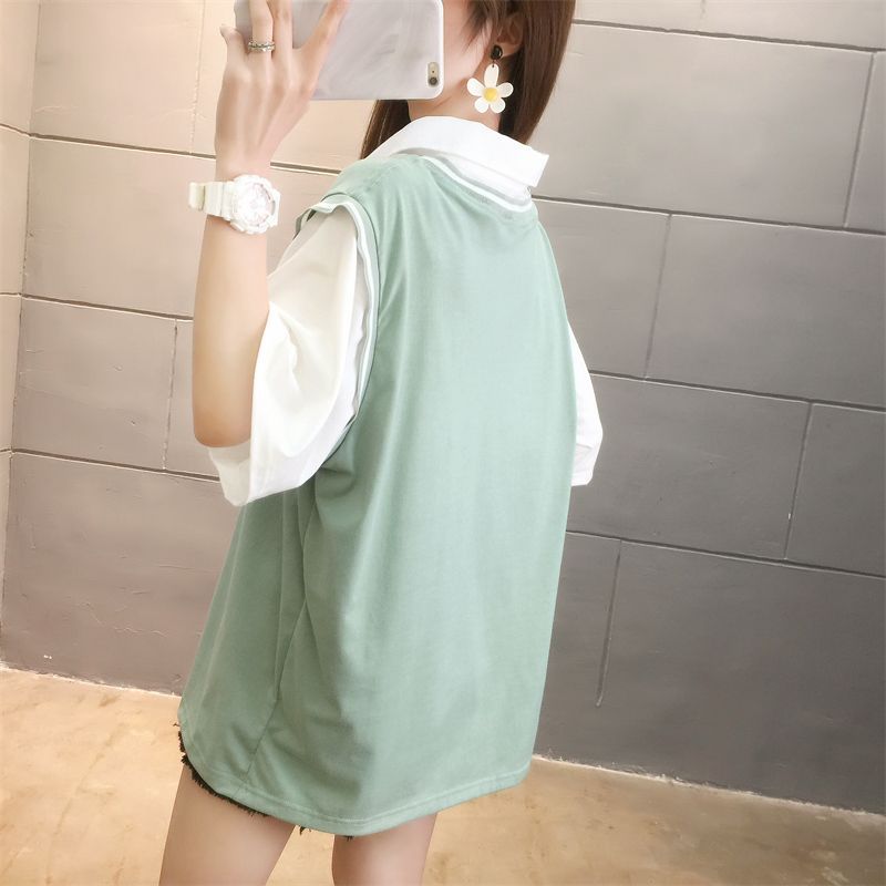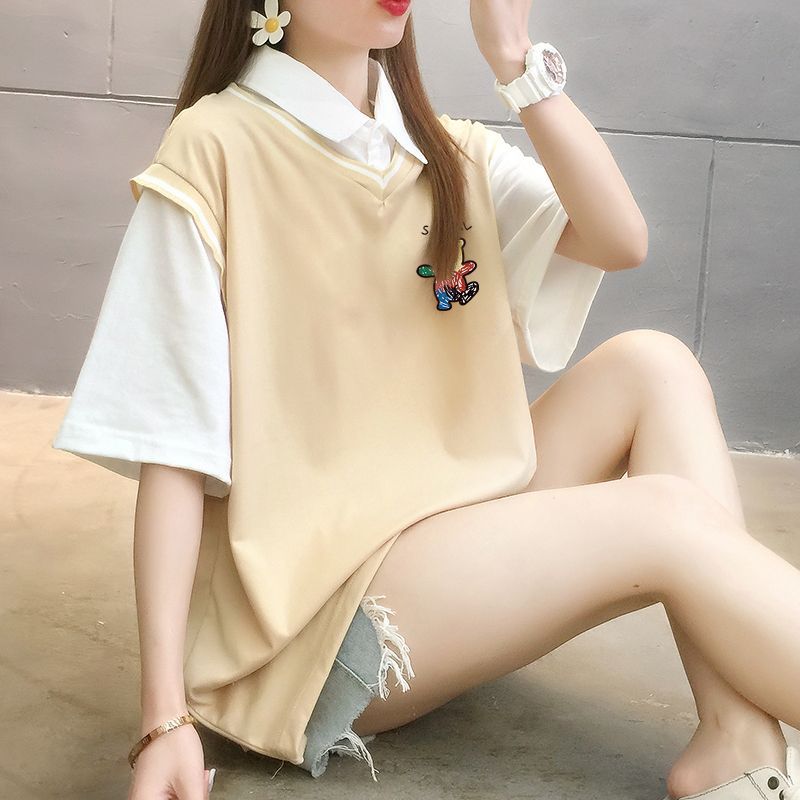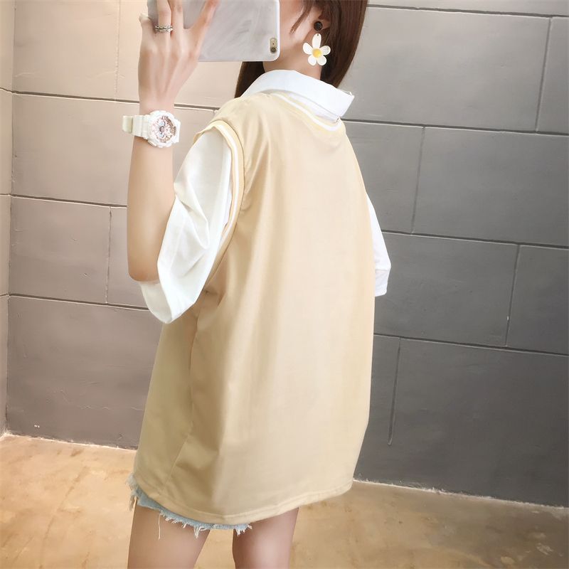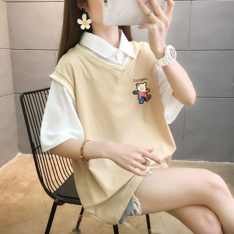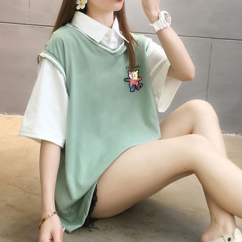 만화 가짜 투피스 반팔 티셔츠 소녀의 여름 원피스 2025 새 중학교 고등학생 캐주얼 옷깃 재킷스토어 가기