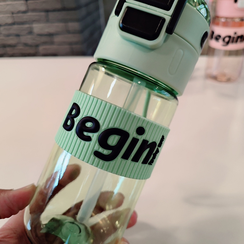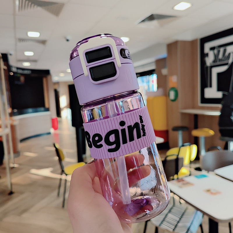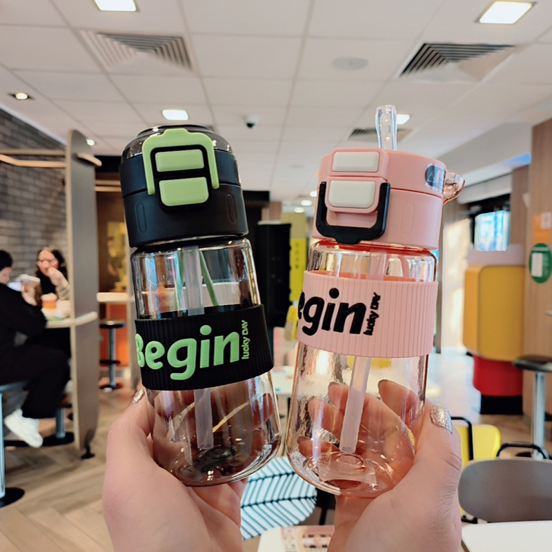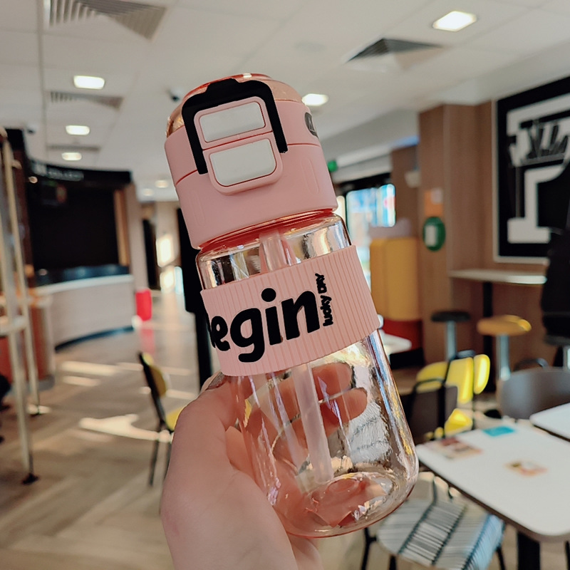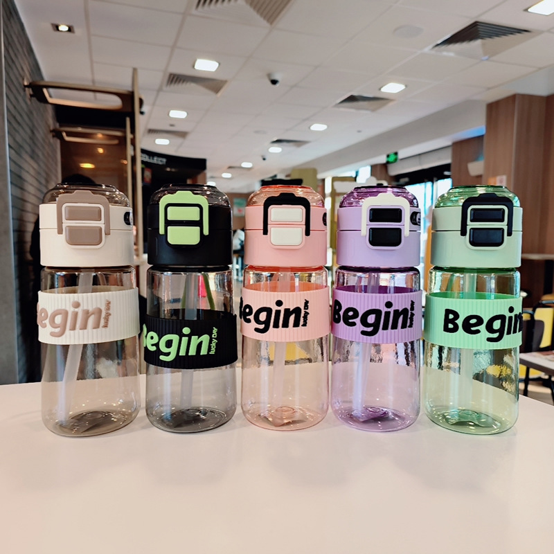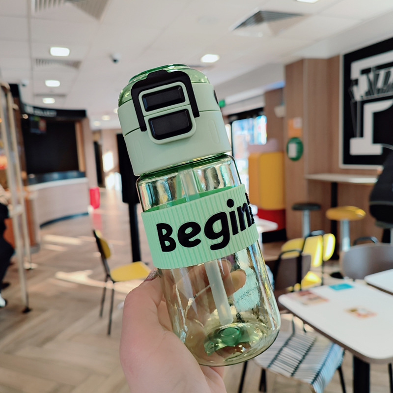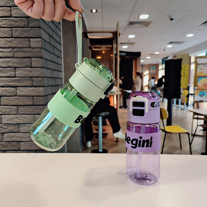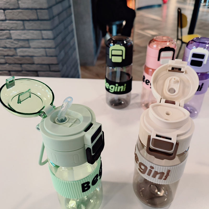 물 컵 학생 플라스틱 새로운 남성과 여성의 높은 가치 밀짚 컵 휴대용 드롭 방지 어린이 여름 두 배 마시는 물병