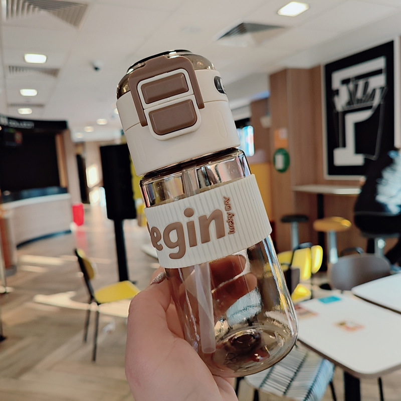 물 컵 학생 플라스틱 새로운 남성과 여성의 높은 가치 밀짚 컵 휴대용 드롭 방지 어린이 여름 두 배 마시는 물병스토어 가기