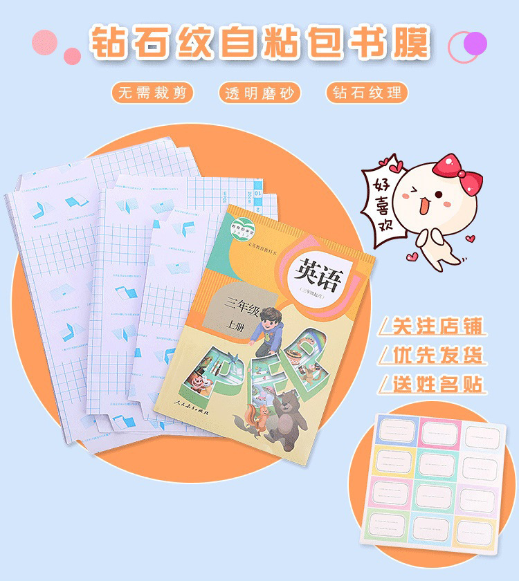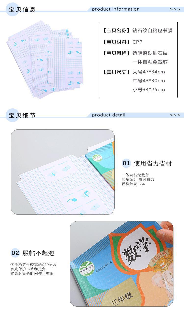 책 표지 책 표지 자체 접착 책 필름 투명 다이아몬드 패턴 초등학생 전체 패키지 책 케이스 두껍게 도매스토어 가기