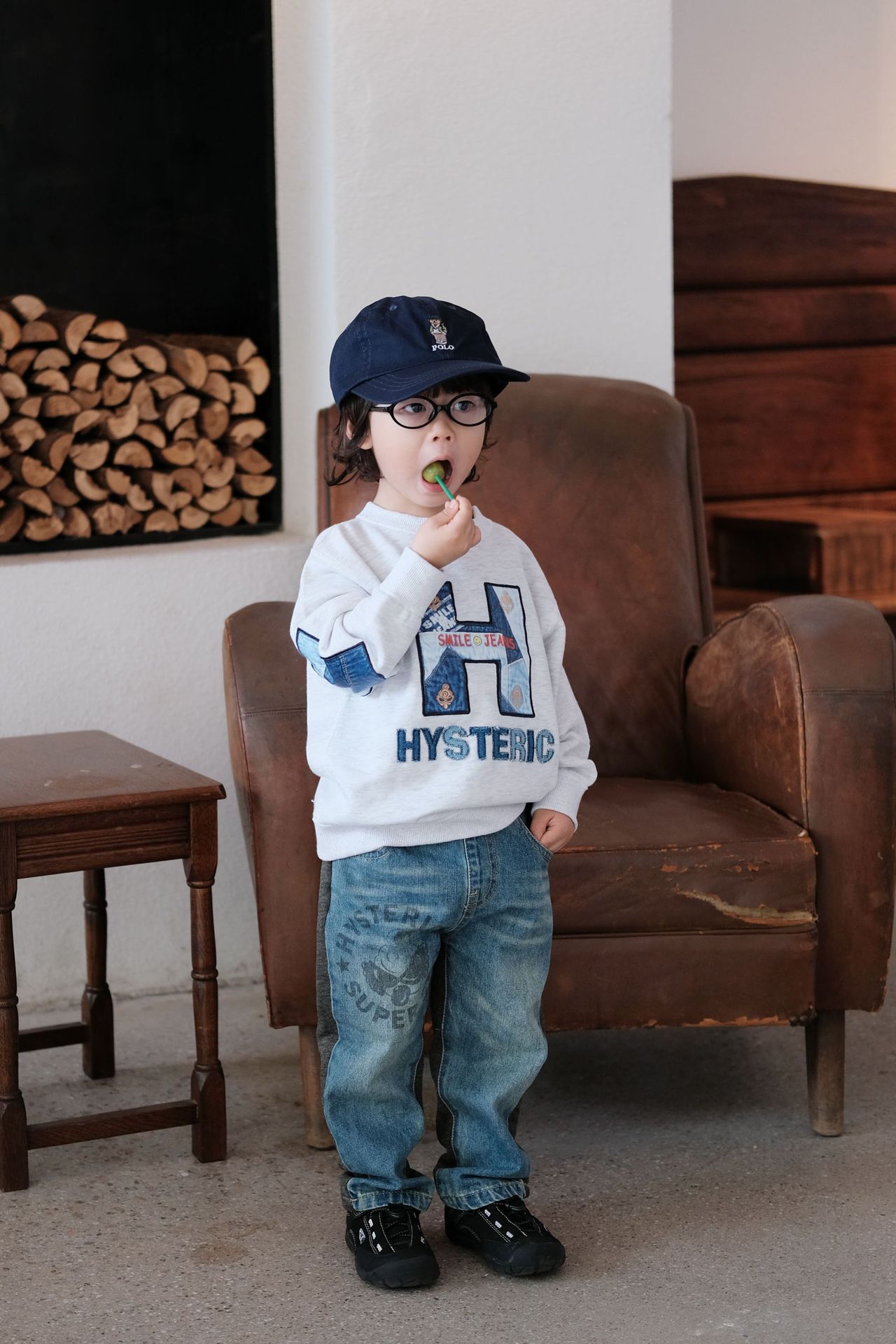 2025 새로운 블랙 슈퍼 조수 브랜드 젖꼭지 큰 H 데님 패치 자수 긴 소매 스웨터 젖꼭지 어린이 스웨터 재고스토어 가기
