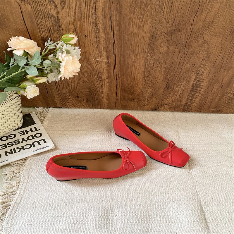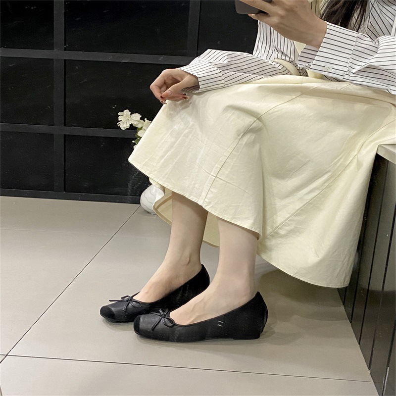 프랑스 플랫 블랙 샤넬 스타일 싱글 레이어 신발 여성 신발 새로운 스타일 스퀘어 발가락 빈티지 콩 신발
