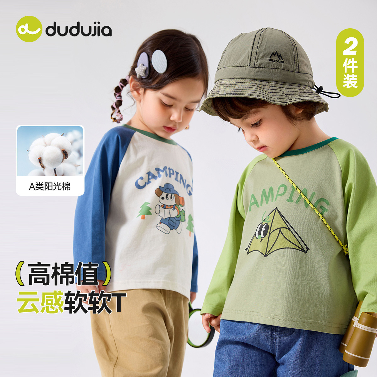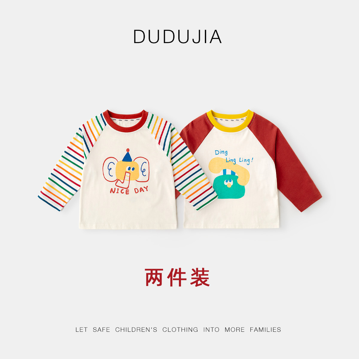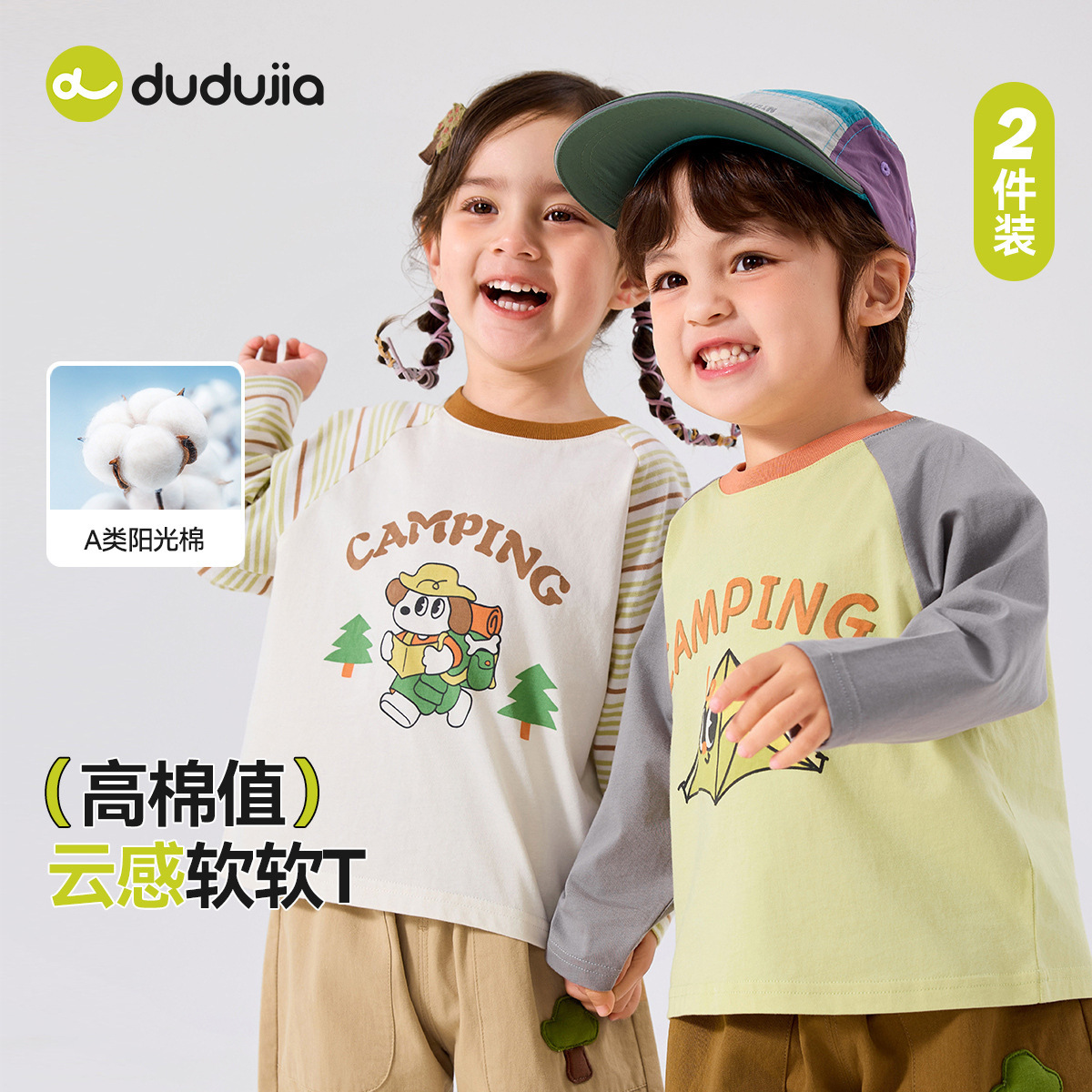 [2개 팩] Dudujia 아동용 티셔츠 가을 소년 긴팔 탑 가을 소녀 바닥 셔츠스토어 가기