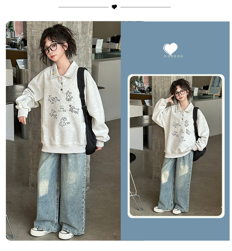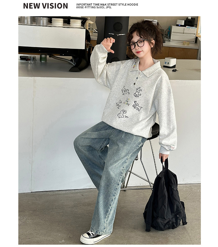 여아 가을 스웨트셔츠 폴로 셔츠 2025 봄 가을 자수 신상 유행 아동 스웨트셔츠 어린 소녀 캐주얼 상의스토어 가기