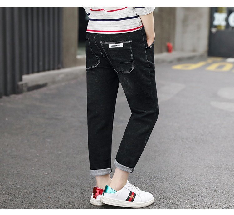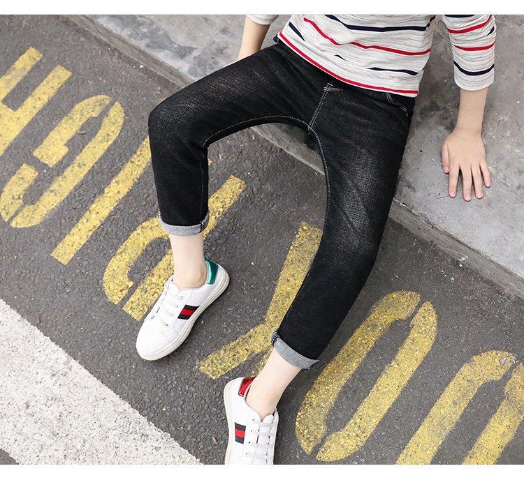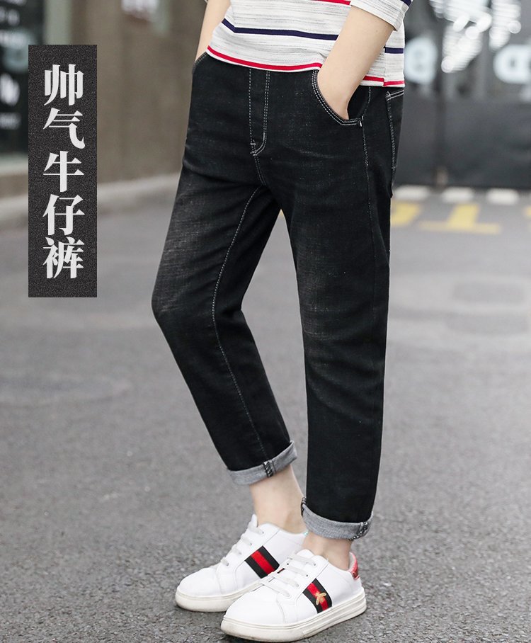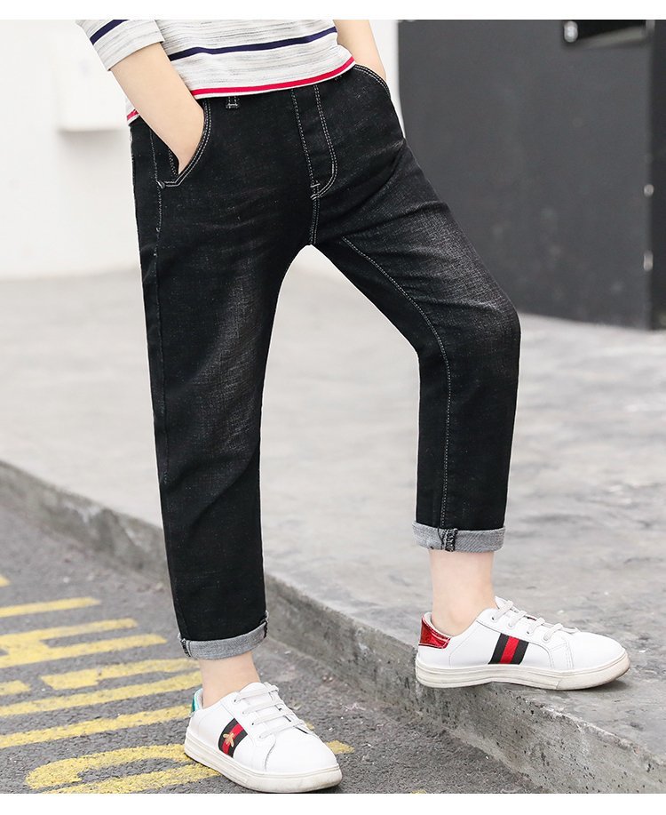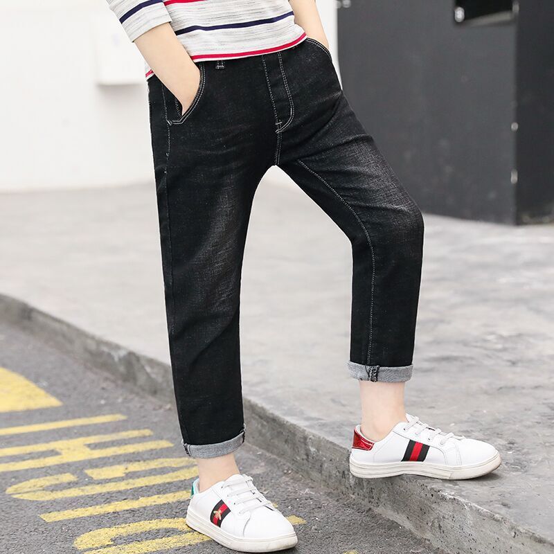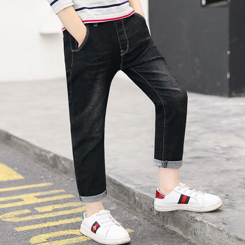 아동복 바지 2025 봄과 가을 느슨한 스트레이트 유행 새로운 도착 소년 바지 대형 어린이 캐주얼 청바지스토어 가기