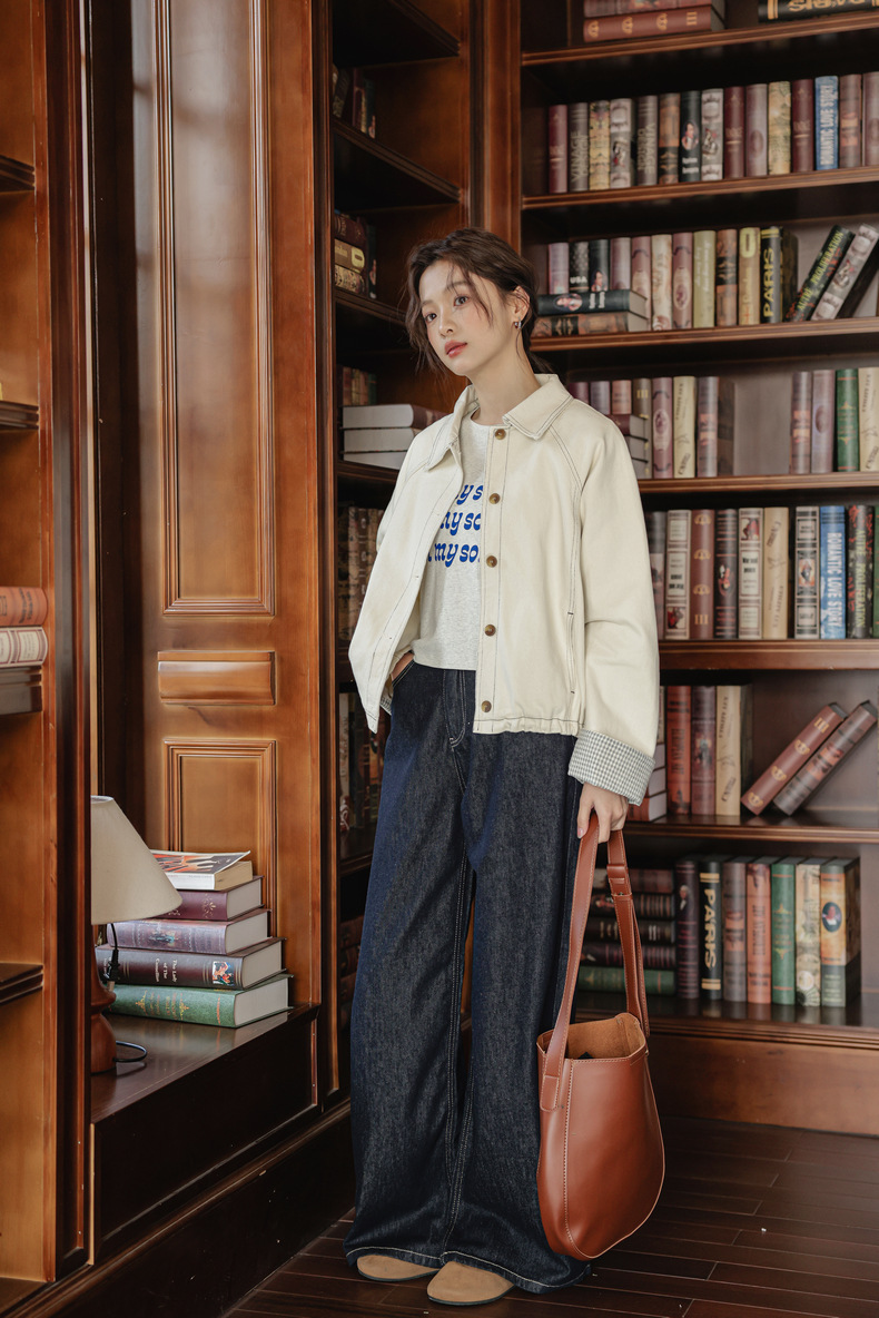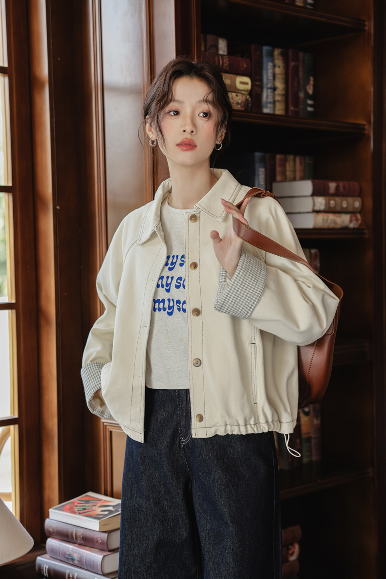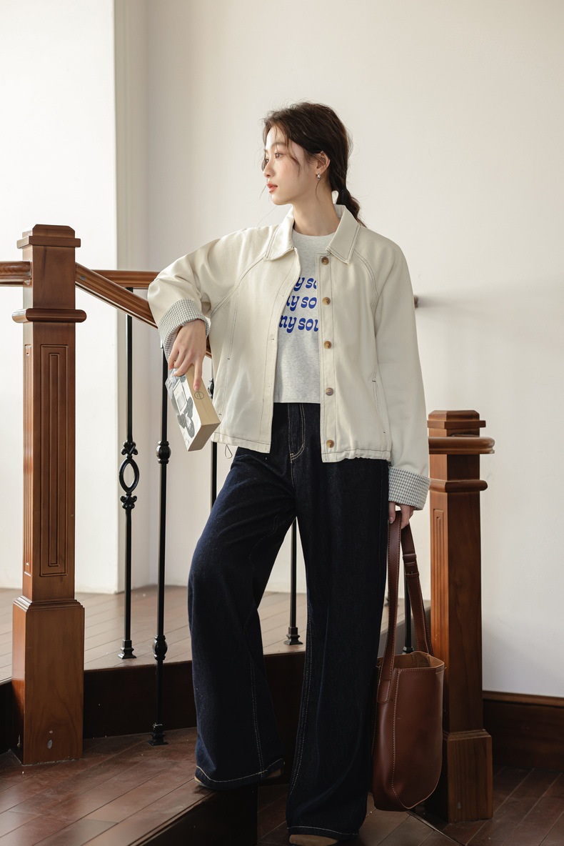 리얼 샷 2025 봄 새로운 한국 스타일 디자인 drawstring 화이트 데님 코트 여성의 긴 소매 다용도 재킷