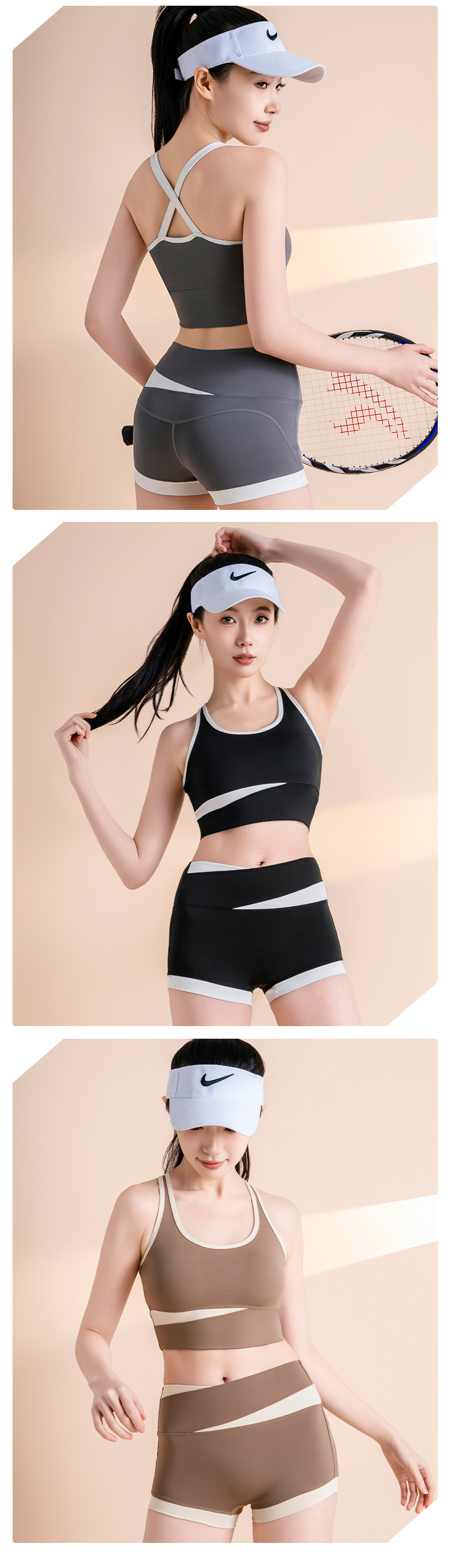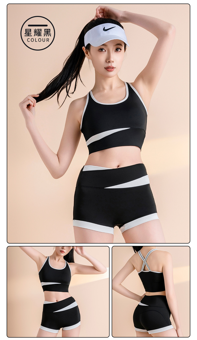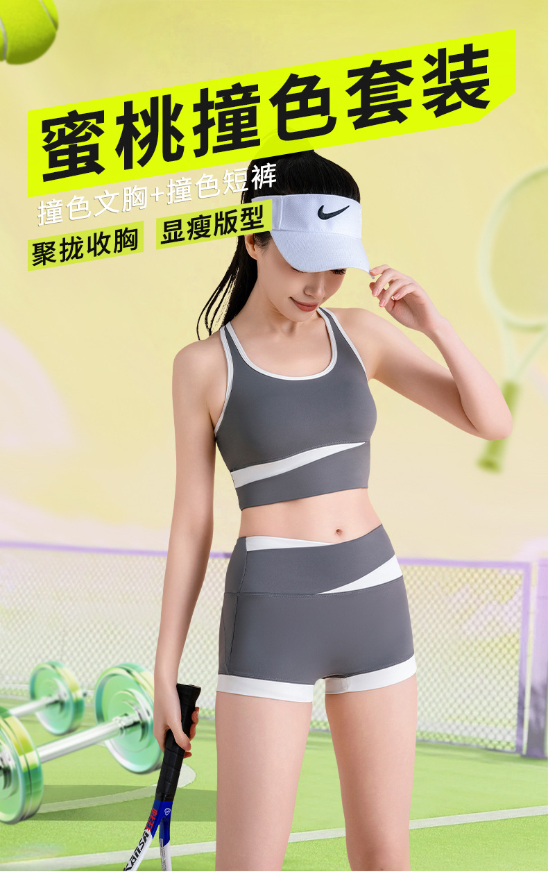 여름 짧은 단단한 유행 세트 높은 허리 알몸 느낌 훈련 달리기 스포츠 피트니스 요가 옷 빠른 건조한 아름다운 뒤