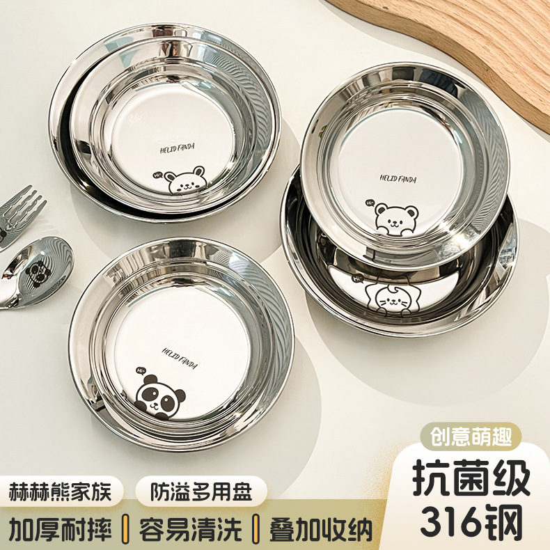 316 스테인레스 스틸 안티 오버플로 디너 플레이트 홈 매점 호텔 심화 스낵 플레이트 식품 등급 두꺼운 접시 요리 플레이트스토어 가기