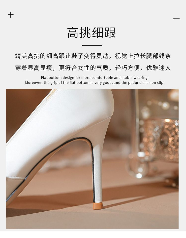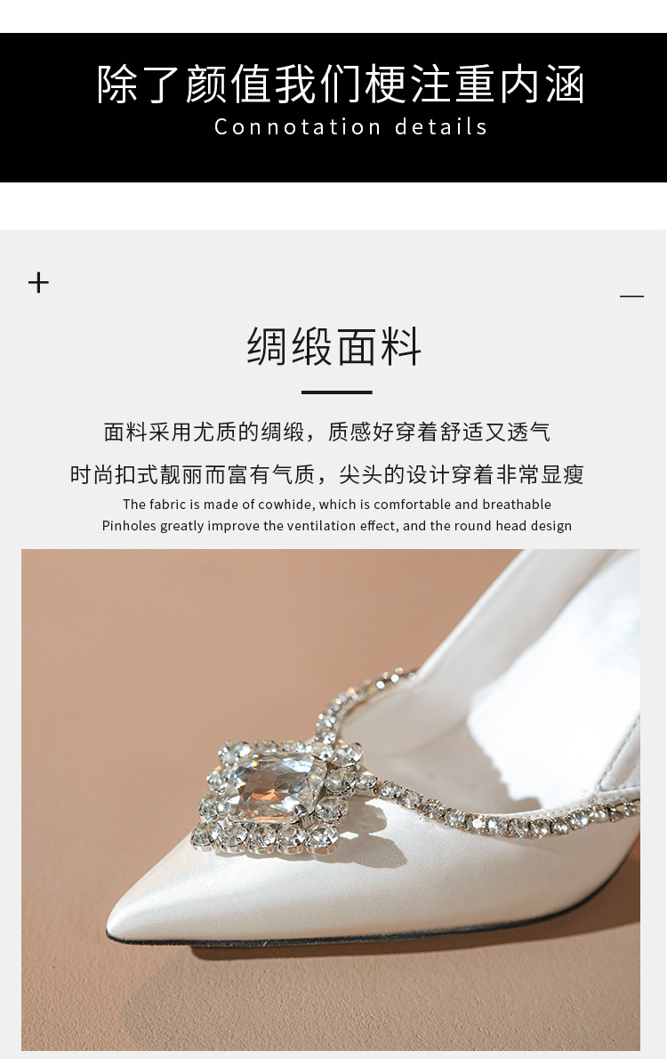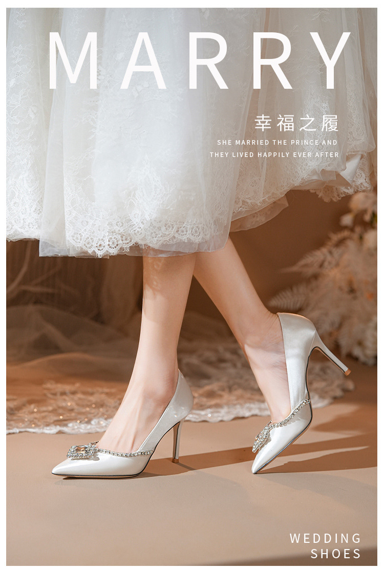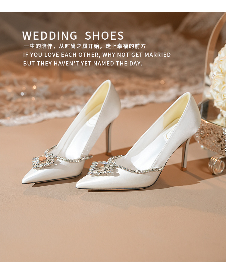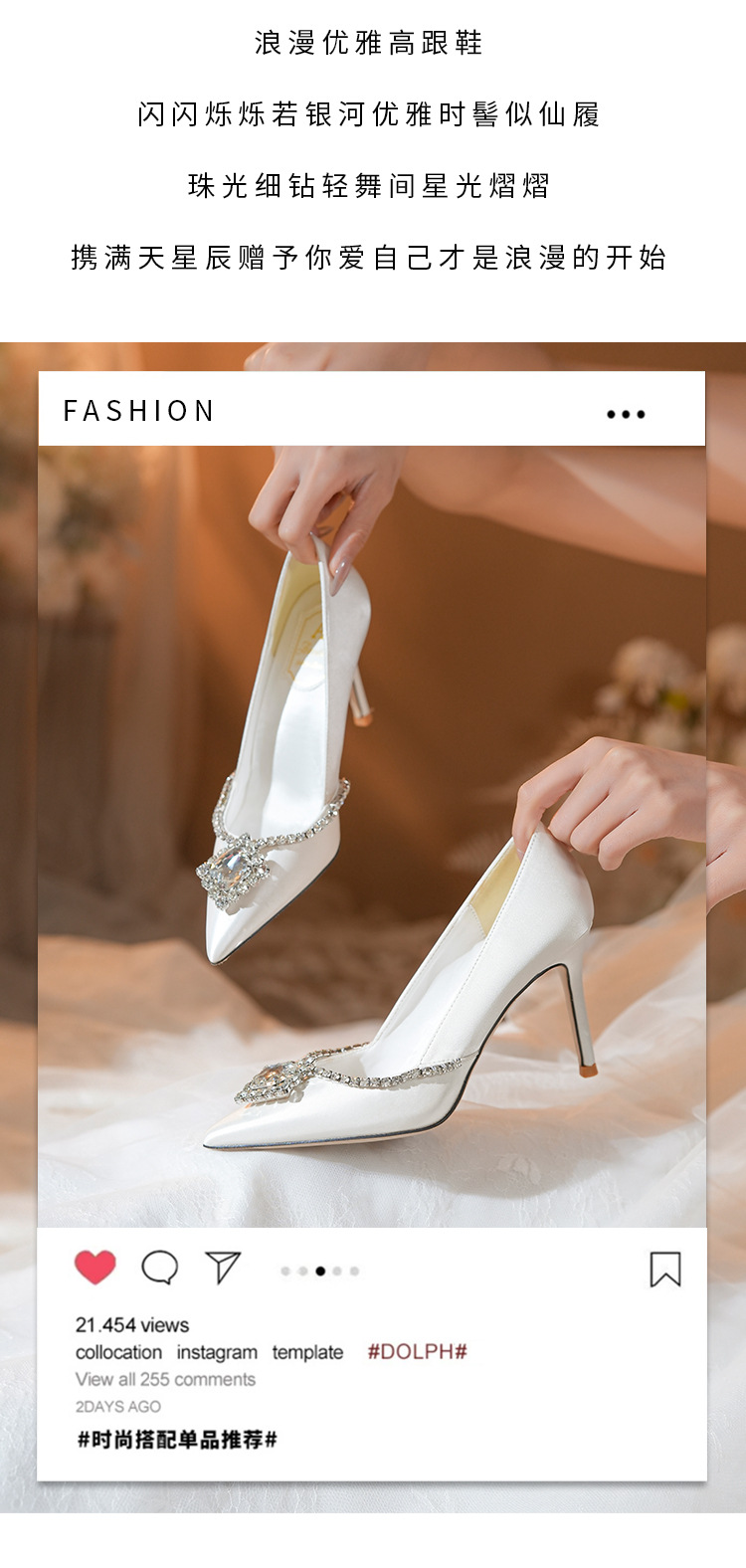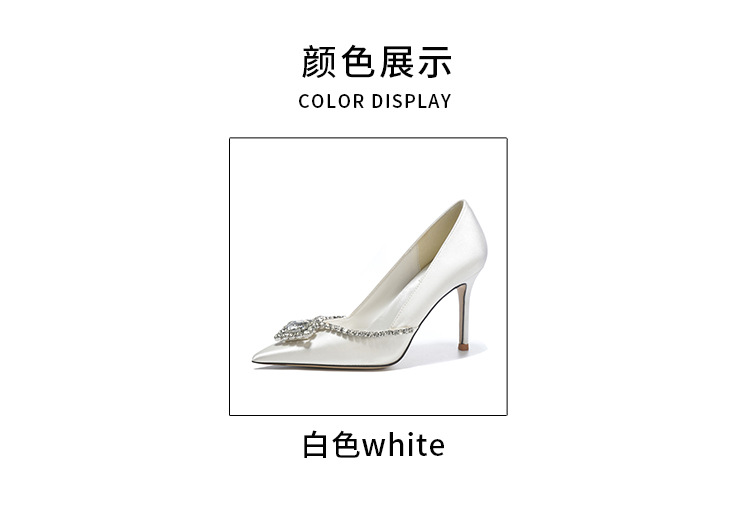 화이트 라인스톤 하이힐 여성 2025 새로운 뾰족한 스틸레토 힐 사틴 프랑스 웨딩 슈즈 웨딩 원피스 신부 신발스토어 가기