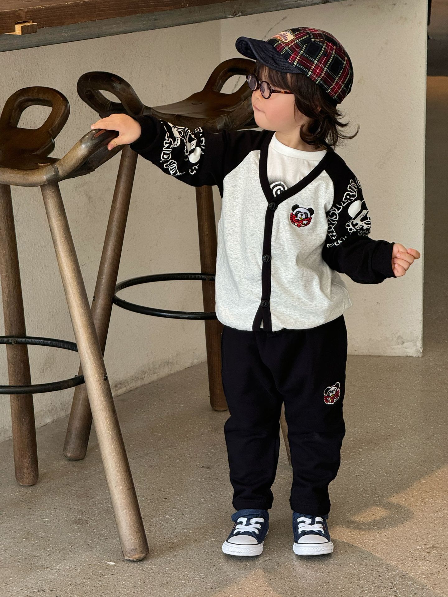 2025 새로운 블랙 차오 차오 브랜드 젖꼭지 팬더 자수 슬리브 카디건 자켓 젖꼭지 어린이 재킷 재고스토어 가기
