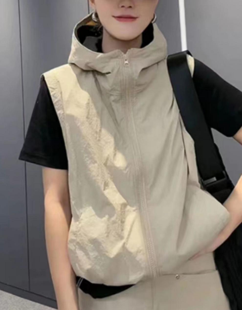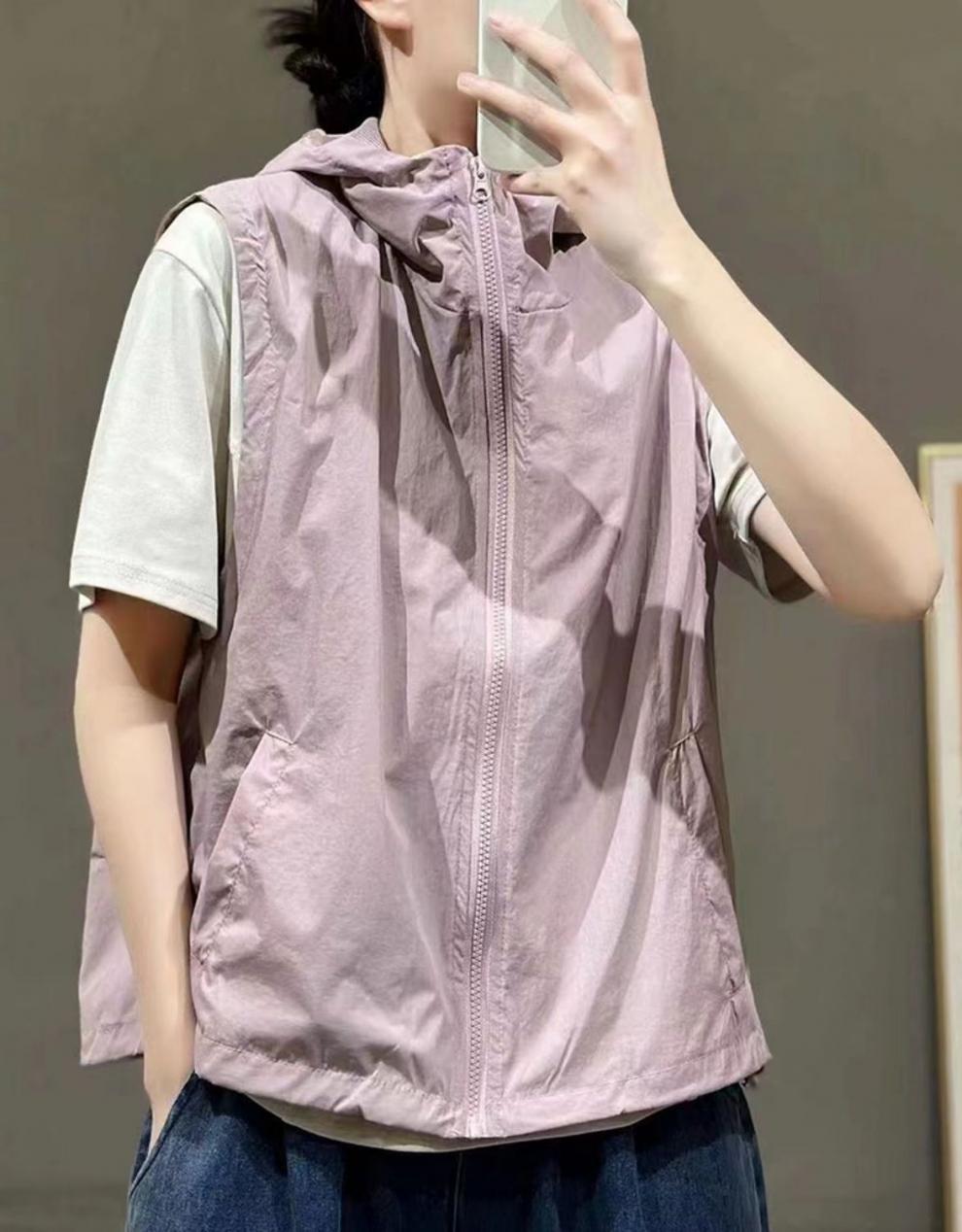 여름 통기성 봄과 여름 얇은 후드 지퍼 여성 조끼 새로운 스타일 태양 보호 패션 올 매치 태양 보호 의류