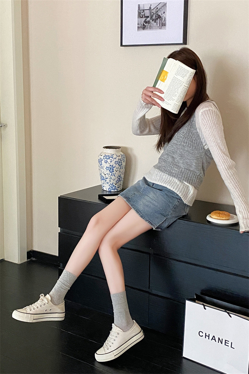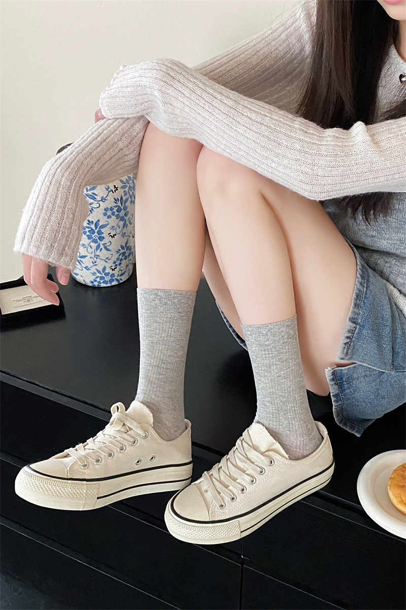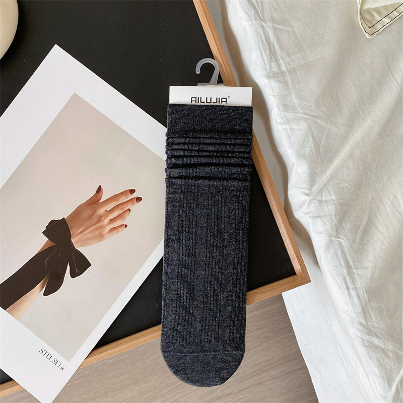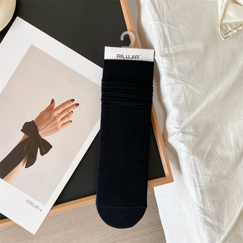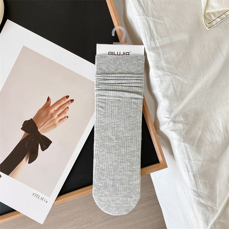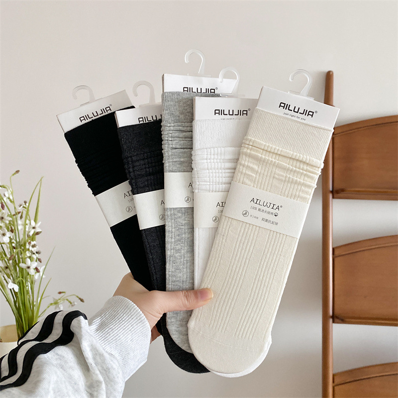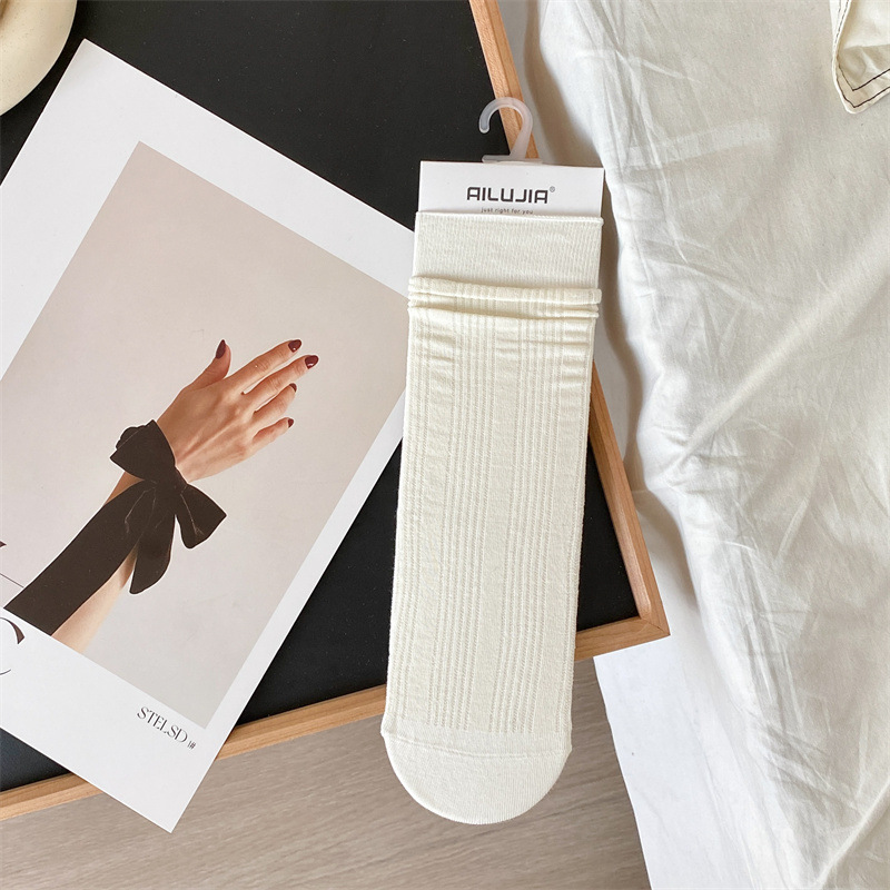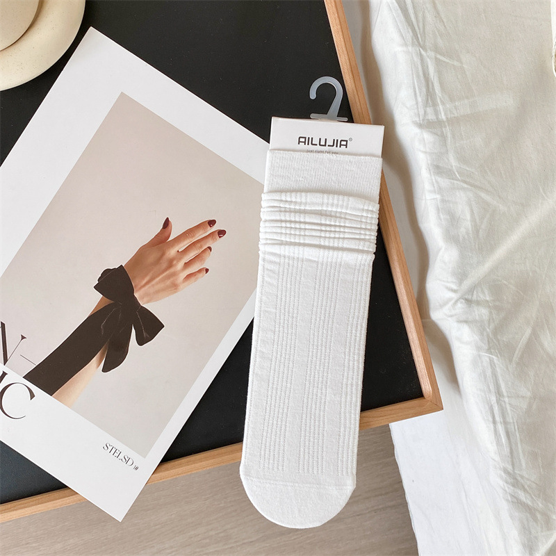 Drawstrip Straight Plate Stacked Socks for Children 봄과 여름 새로운 뼈없는 Combed Cotton 중간 길이의 양말 일본 캐주얼 올 매치 스타킹스토어 가기