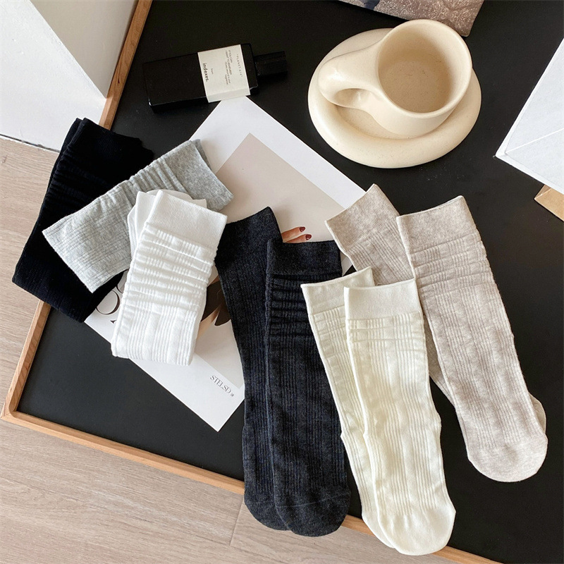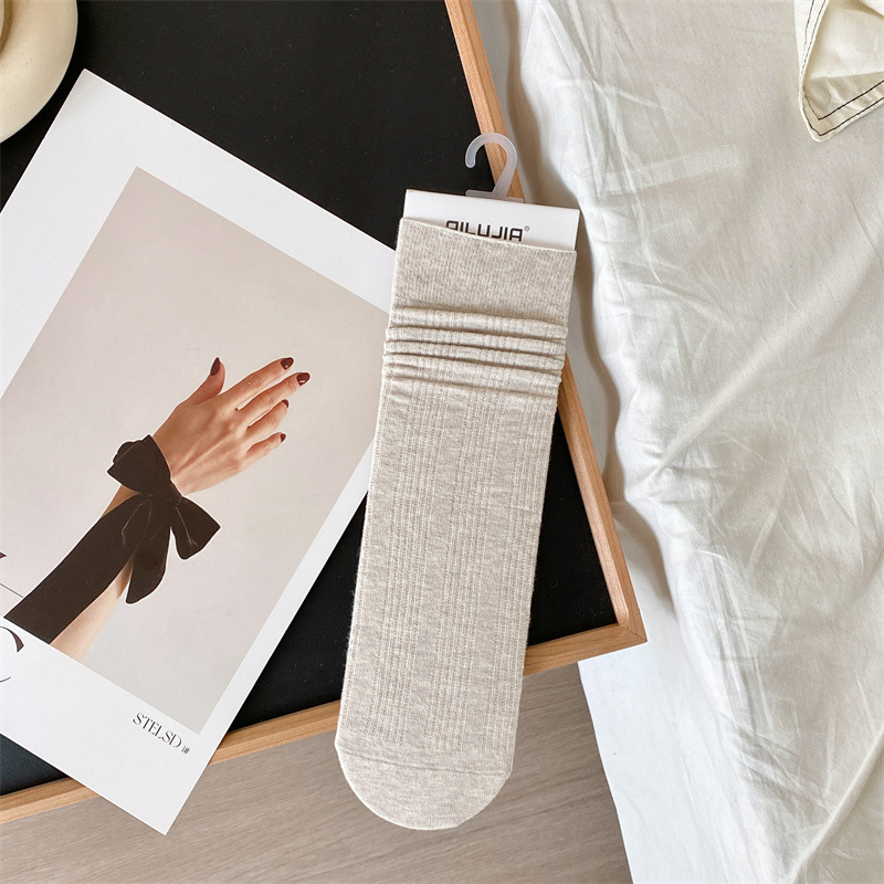 Drawstrip Straight Plate Stacked Socks for Children 봄과 여름 새로운 뼈없는 Combed Cotton 중간 길이의 양말 일본 캐주얼 올 매치 스타킹