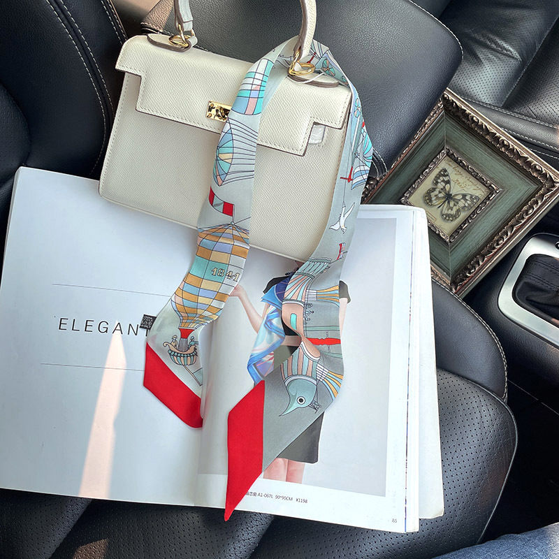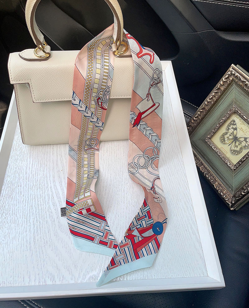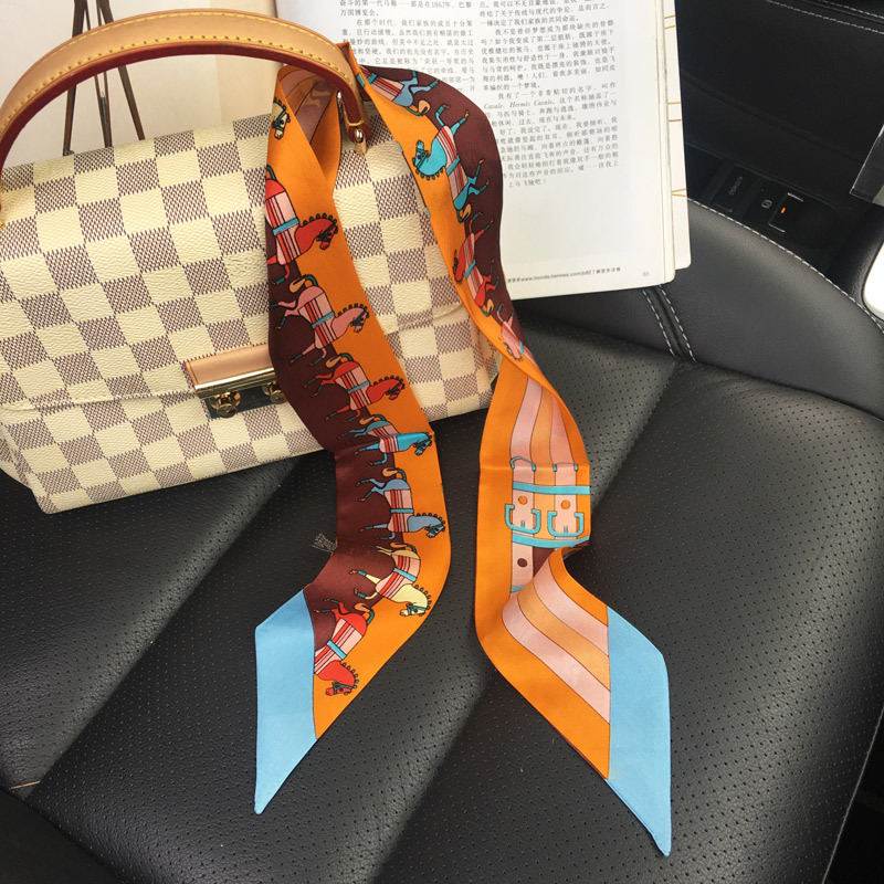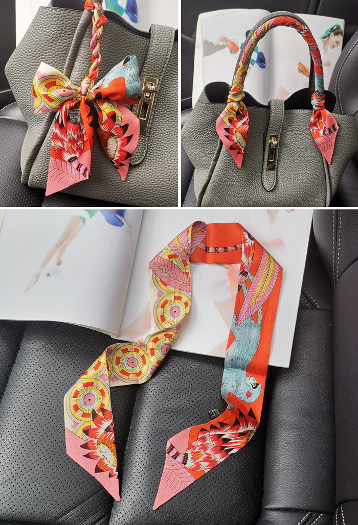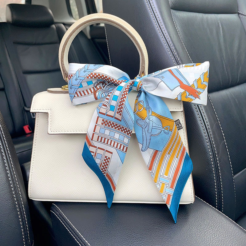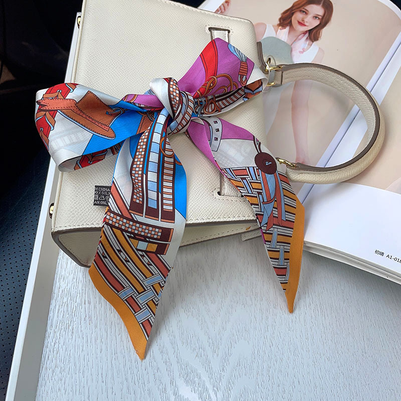 새로운 가방 핸들 리본 가방 스카프 활 헤어 밴드 머리띠 여성을위한 다기능 실크 트윌 작은 스카프