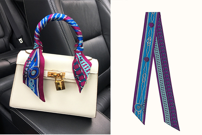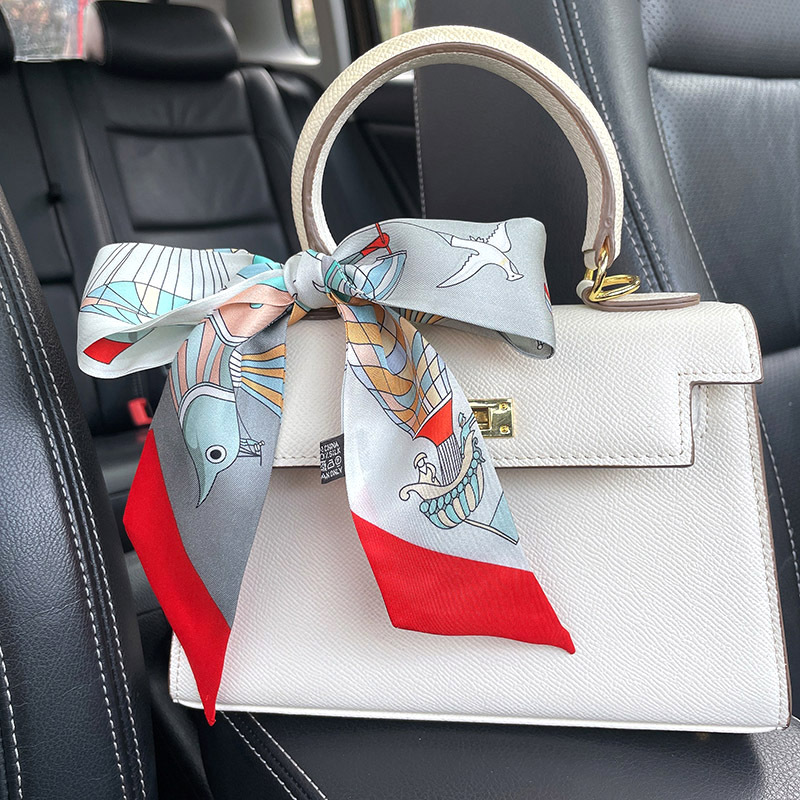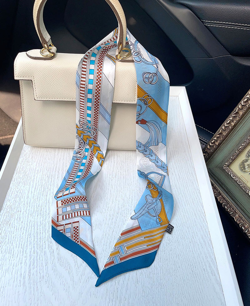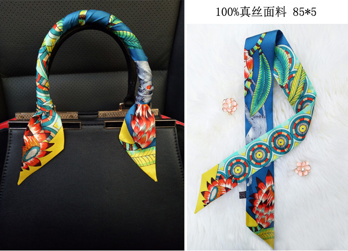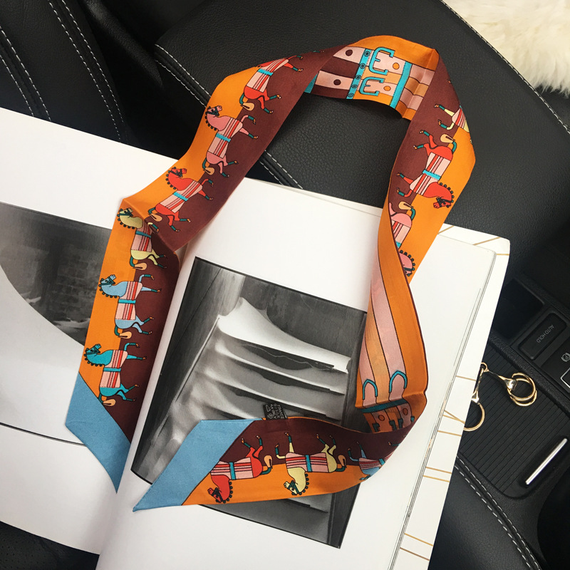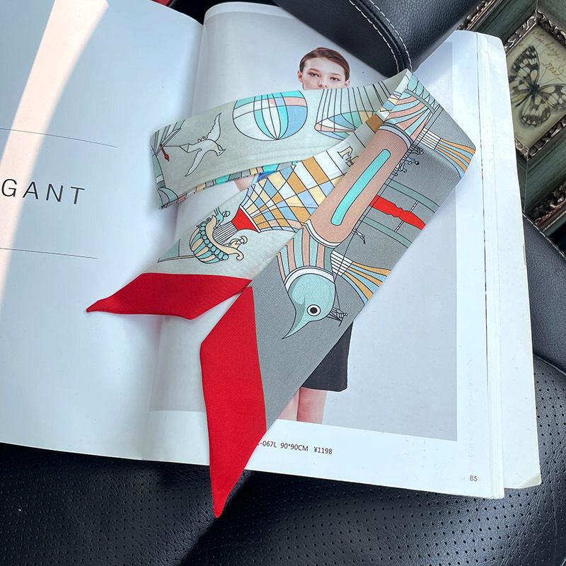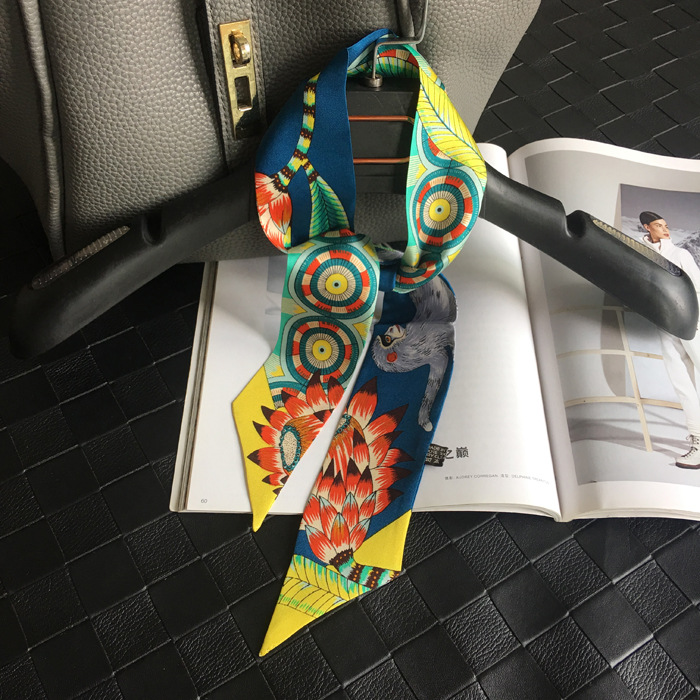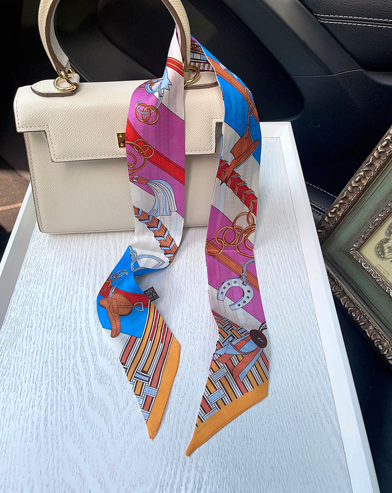 새로운 가방 핸들 리본 가방 스카프 활 헤어 밴드 머리띠 여성을위한 다기능 실크 트윌 작은 스카프