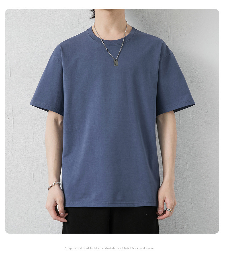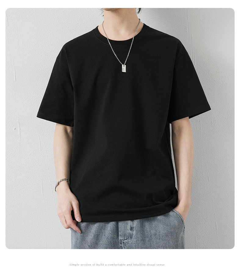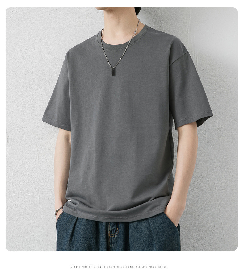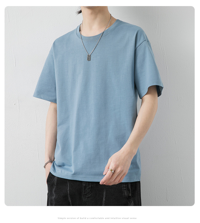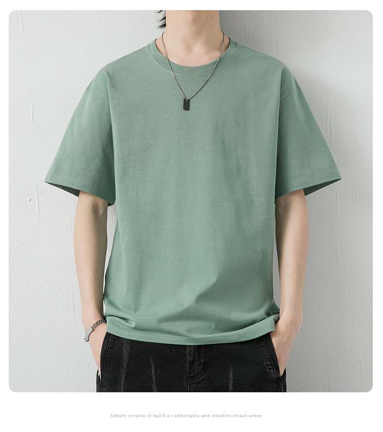 국경 간 여름 반팔 티셔츠 남성 크루 넥베이스 셔츠 통기성 땀 흡수 티셔츠 트렌디 캐주얼 솔리드 컬러 남성용 티셔츠