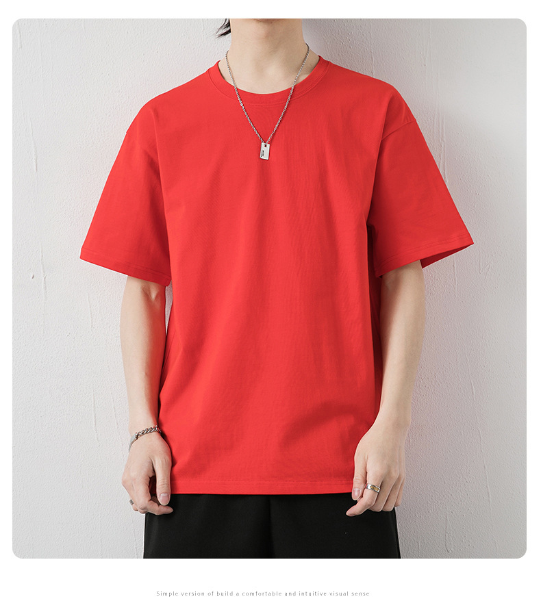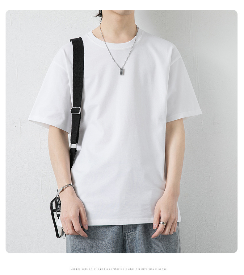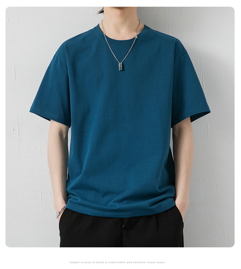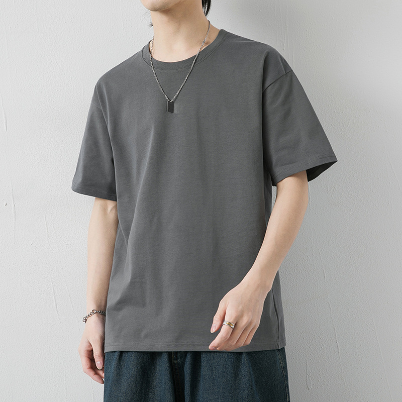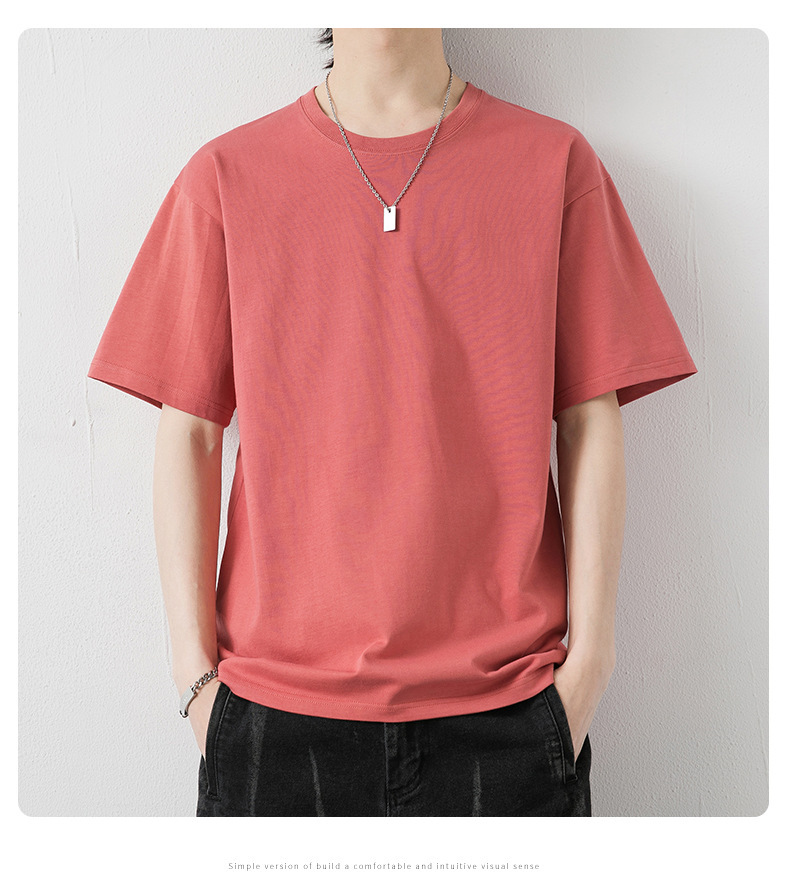 국경 간 여름 반팔 티셔츠 남성 크루 넥베이스 셔츠 통기성 땀 흡수 티셔츠 트렌디 캐주얼 솔리드 컬러 남성용 티셔츠