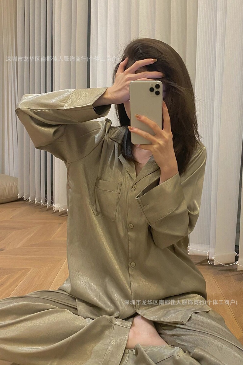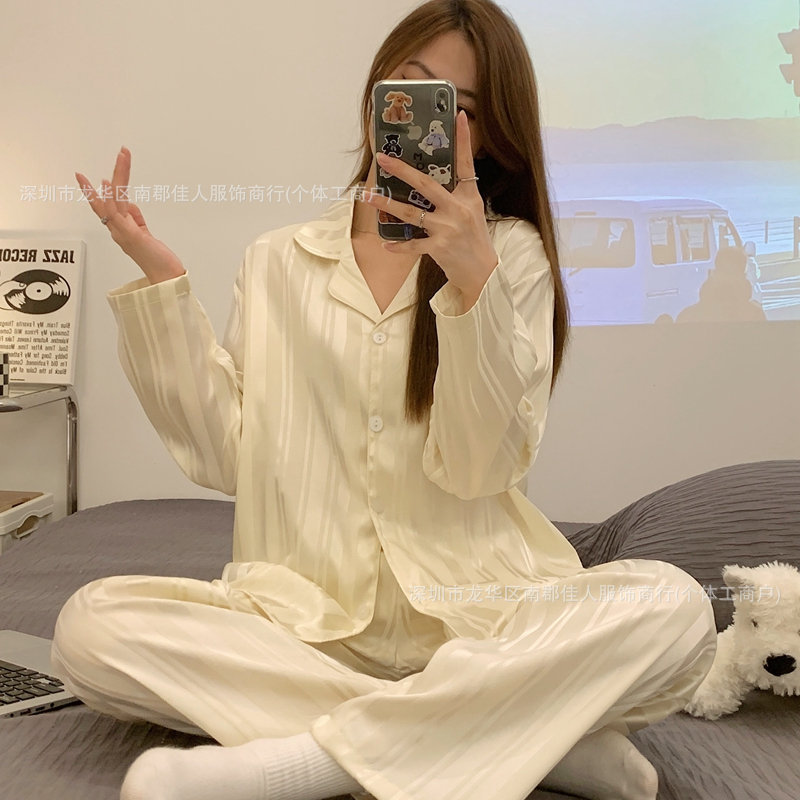 2025 년 여름 얇은 반팔 아이스 실크 자카드 파자마 여성 여름 실크 같은 Ins 스타일 홈 의류 잠옷스토어 가기
