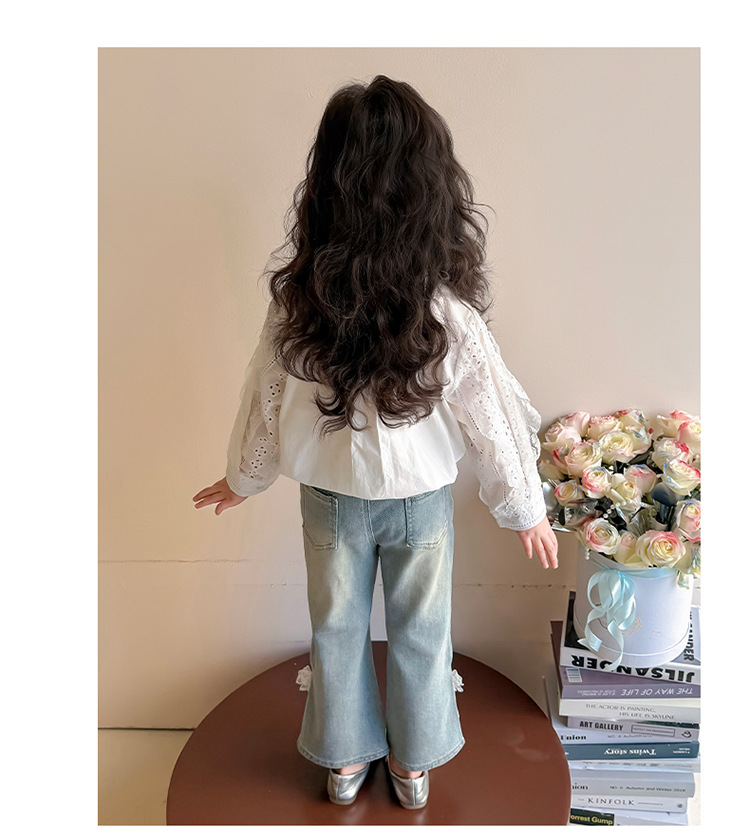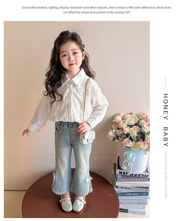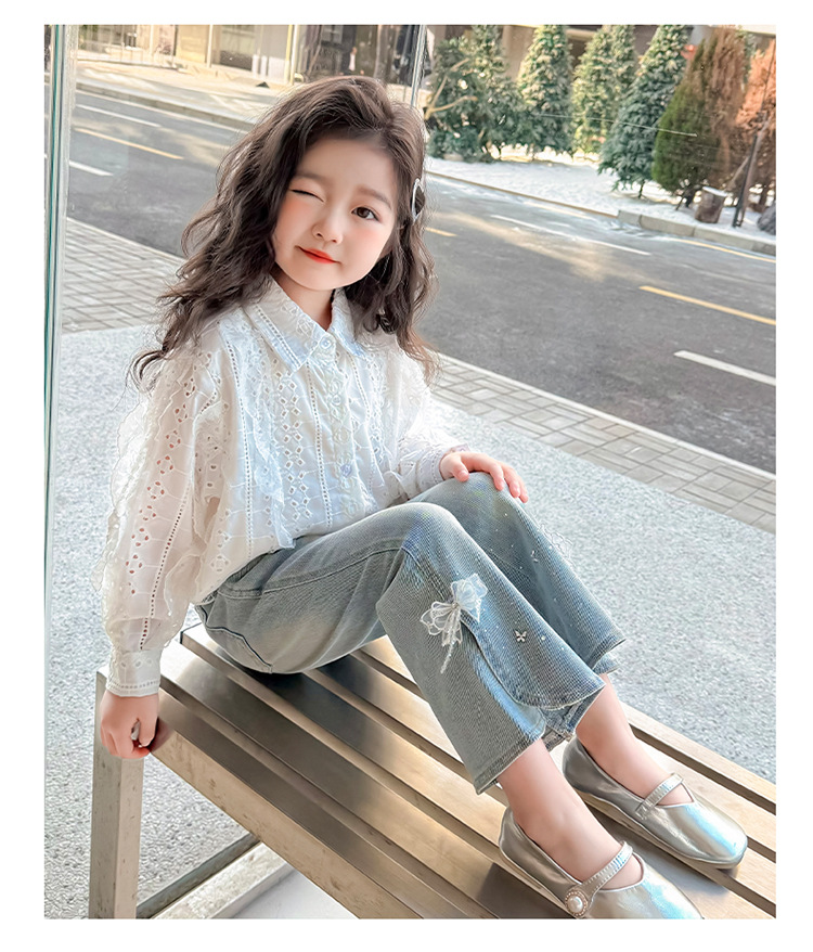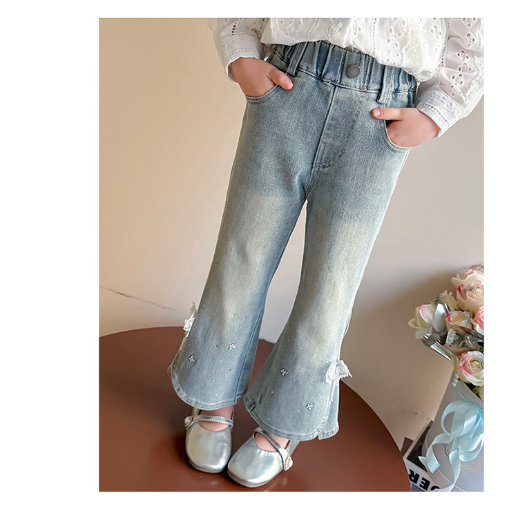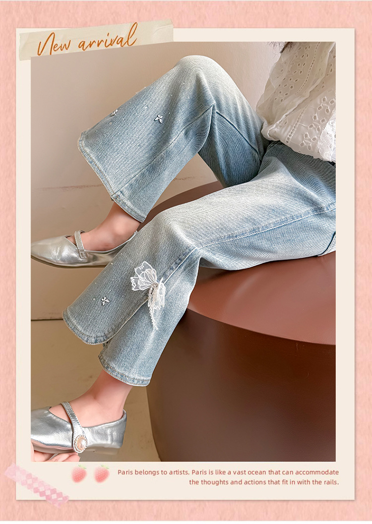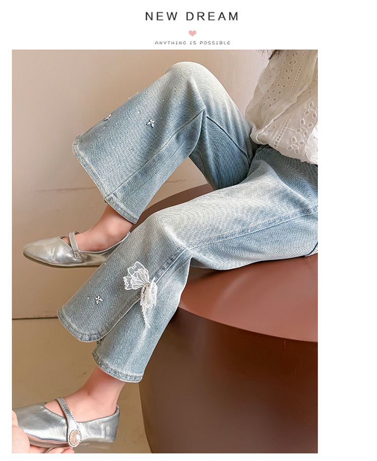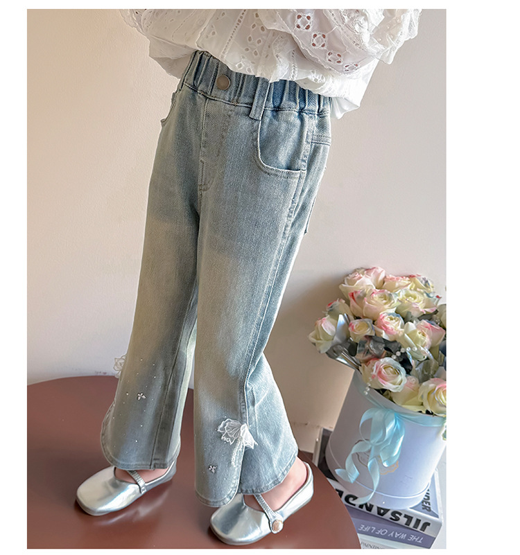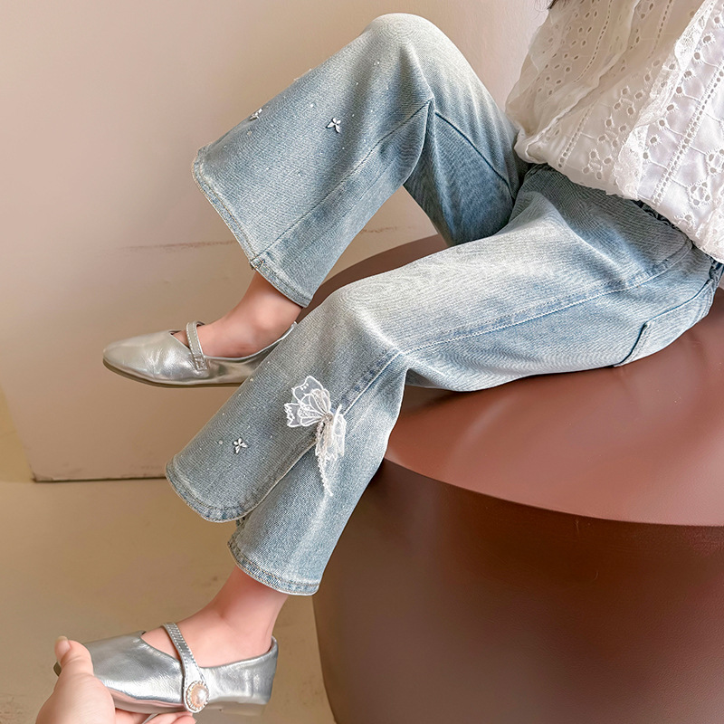 소녀 나비 캐주얼 청바지 2025 봄과 가을 새로운 도착 어린이 봄 한국 스타일 아기 트럼펫 바지스토어 가기