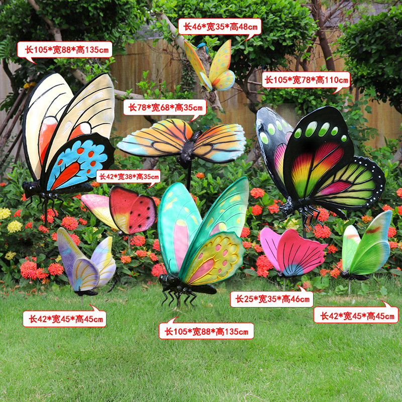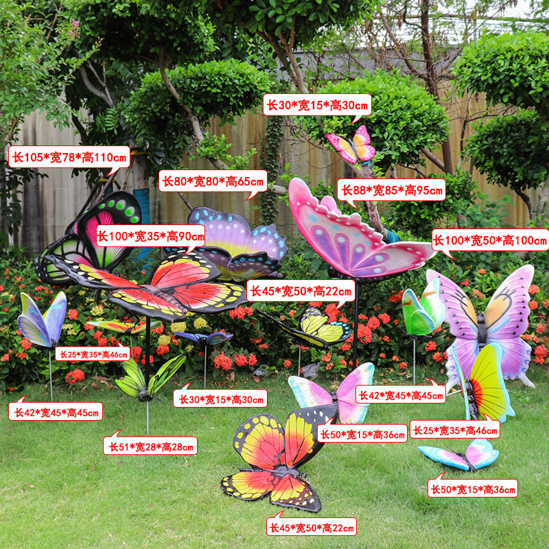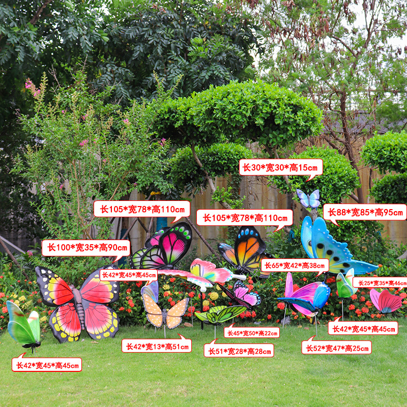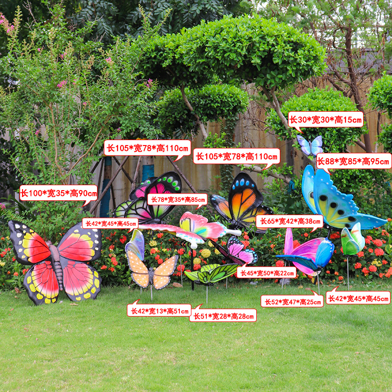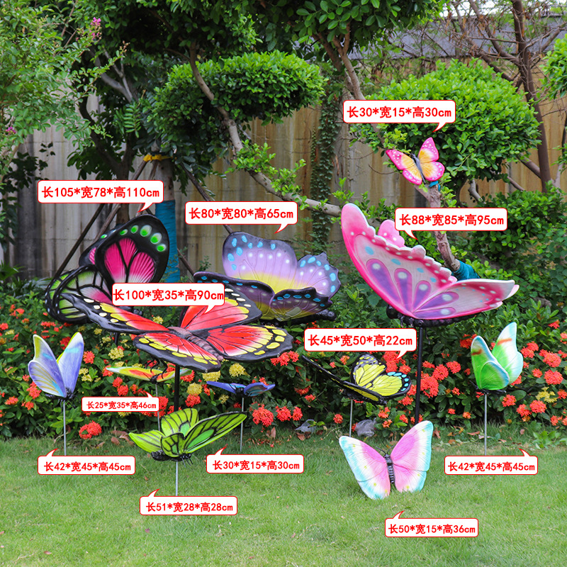 시뮬레이션 나비 조각 야외 유리 섬유 강화 플라스틱 꽃 정원 풍경 잔디 조경 빛나는 동물 장식 장식 장식품스토어 가기