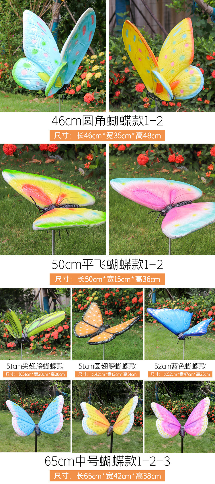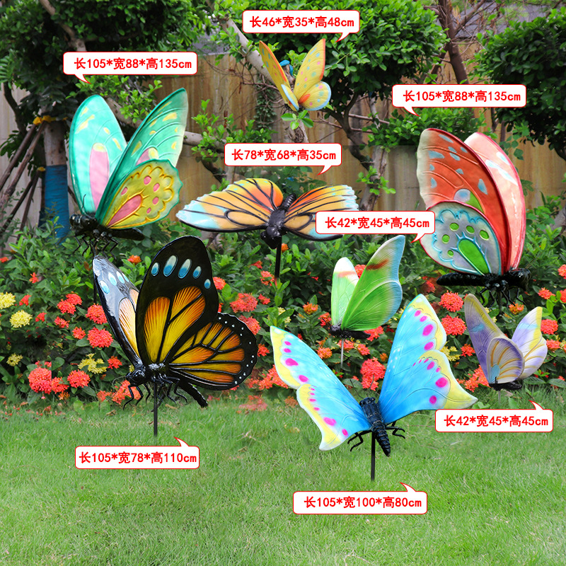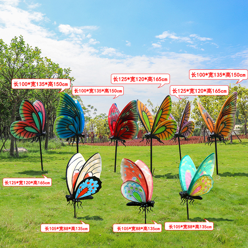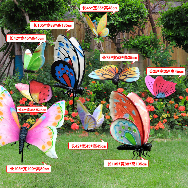 시뮬레이션 나비 조각 야외 유리 섬유 강화 플라스틱 꽃 정원 풍경 잔디 조경 빛나는 동물 장식 장식 장식품스토어 가기