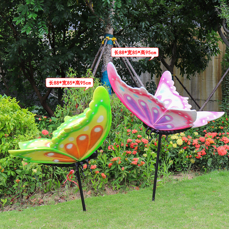 시뮬레이션 나비 조각 야외 유리 섬유 강화 플라스틱 꽃 정원 풍경 잔디 조경 빛나는 동물 장식 장식 장식품