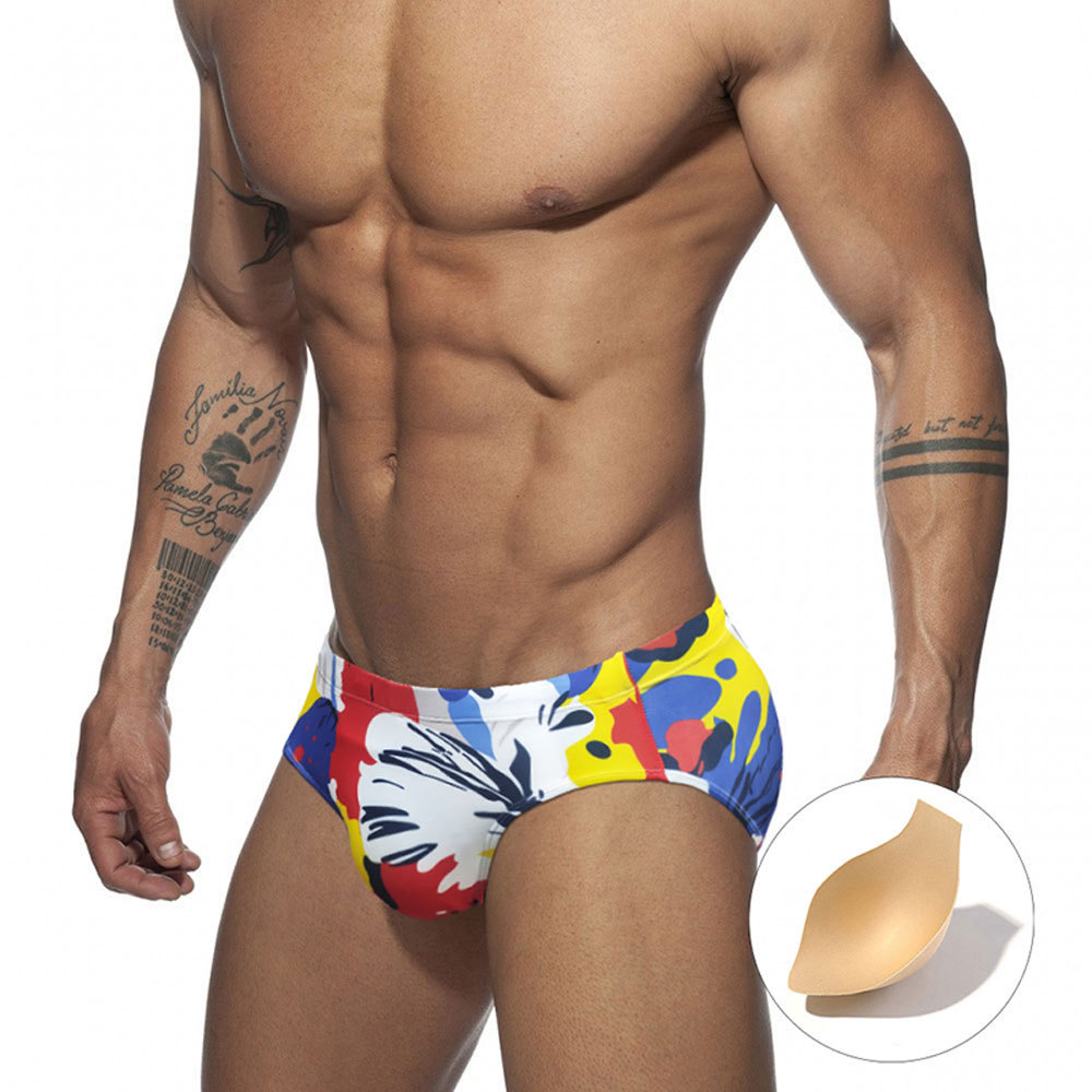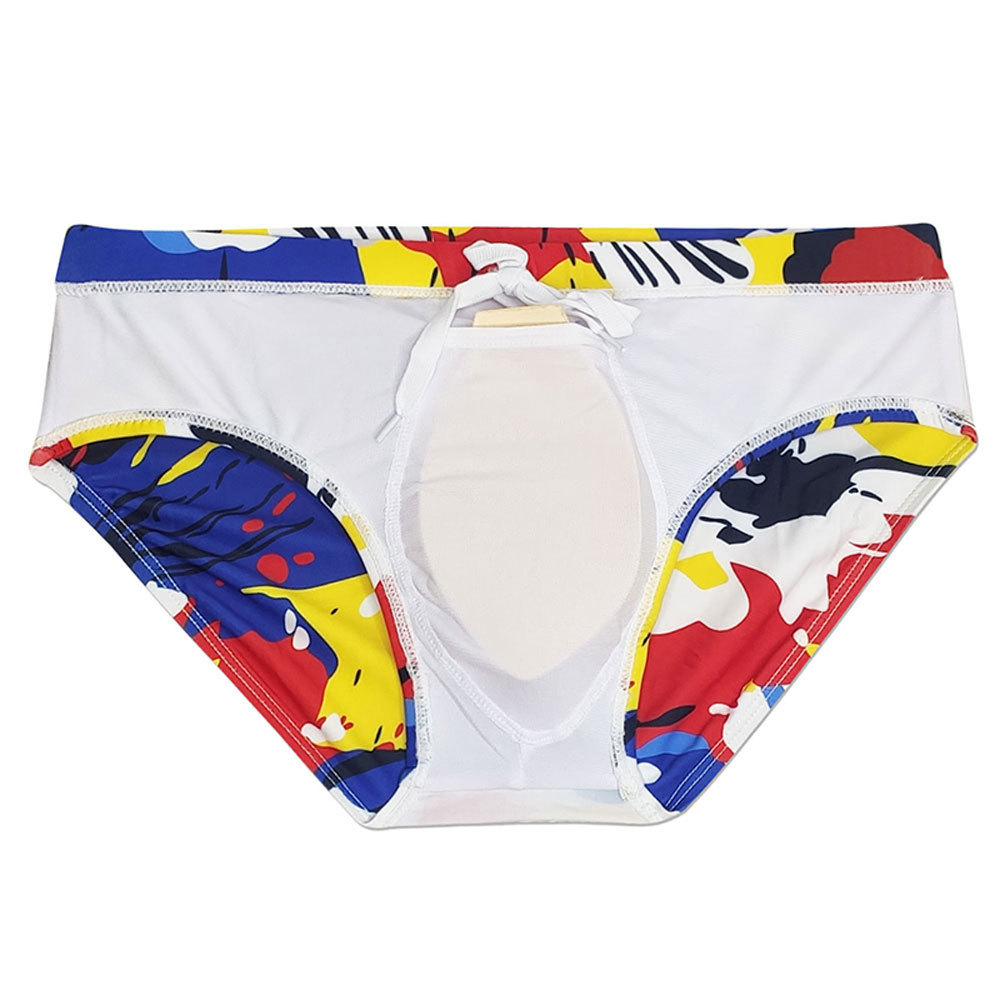 [단종 모델] UXH 남성용 유럽 및 미국 수출용 섹시 로우 웨이스트 에로틱 삼각 수영복 (컵 포함, 섹시한 잉크 스프레이 디자인)