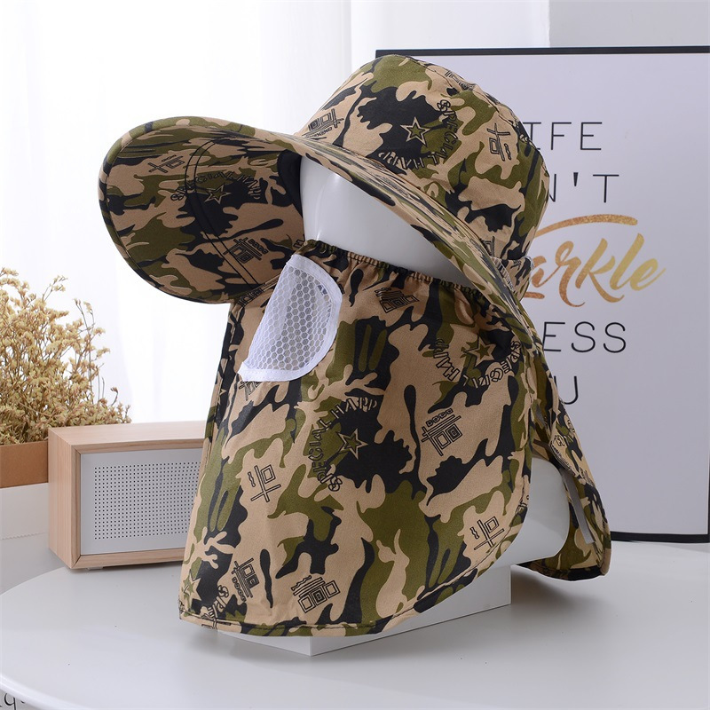 태양 모자 남자의 단색 선 스크린 모자 목도리 목 통기성 자외선 방지 곤충 야외 등산 낚시 모자