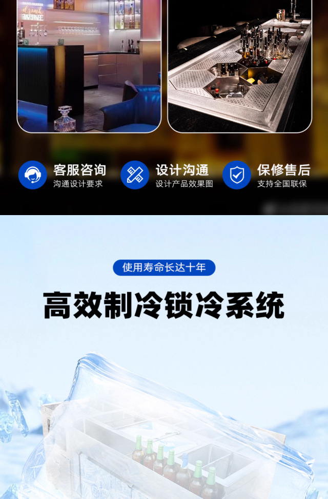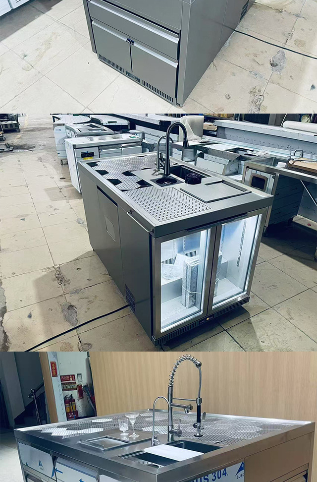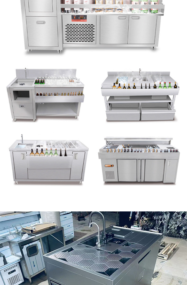 스테인레스 스틸 벌집 형 바텐더 콘솔 냉장고 와인 탱크 전체 워터 바 장비 공장 세트