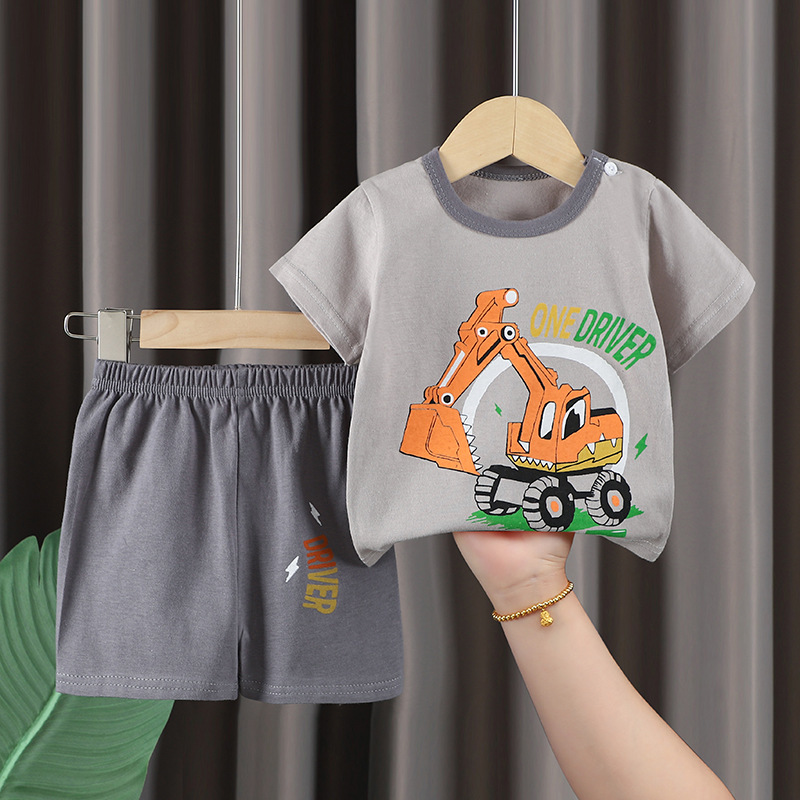 어린이 반팔 세트 면화 새 소년 티셔츠 여름 소녀 반바지 아기 옷 한국 아동복 도매