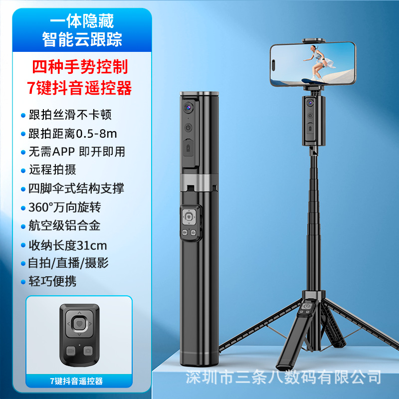 2025 새로운 숨겨진 통합 셀카 스틱 얼굴 초상화 인식 후속 PTZ 휴대 전화 블루투스 셀카 스틱