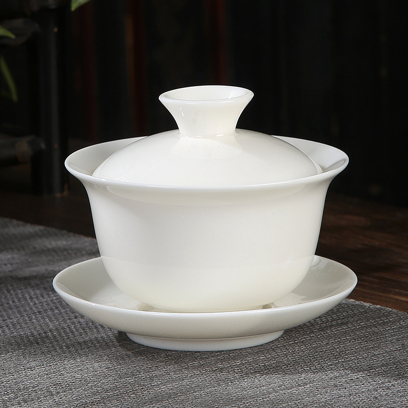 양 지방 옥 화이트 도자기 커버 그릇 Sancai Bowl 차 그릇 싱글 가정용 차 버블 싱글 커버 쿵푸 차 세트
