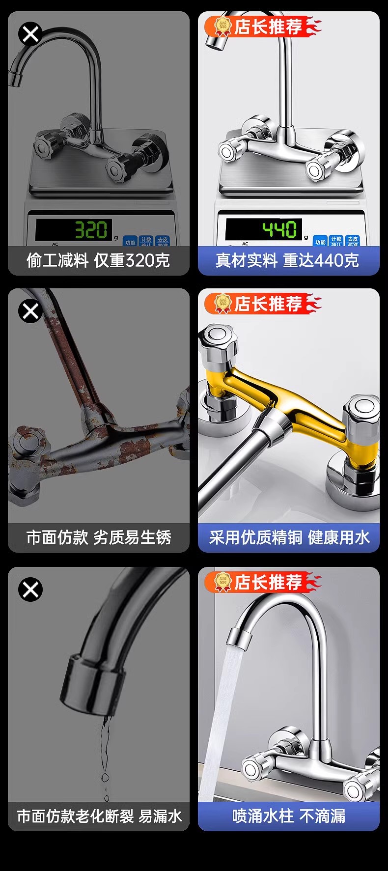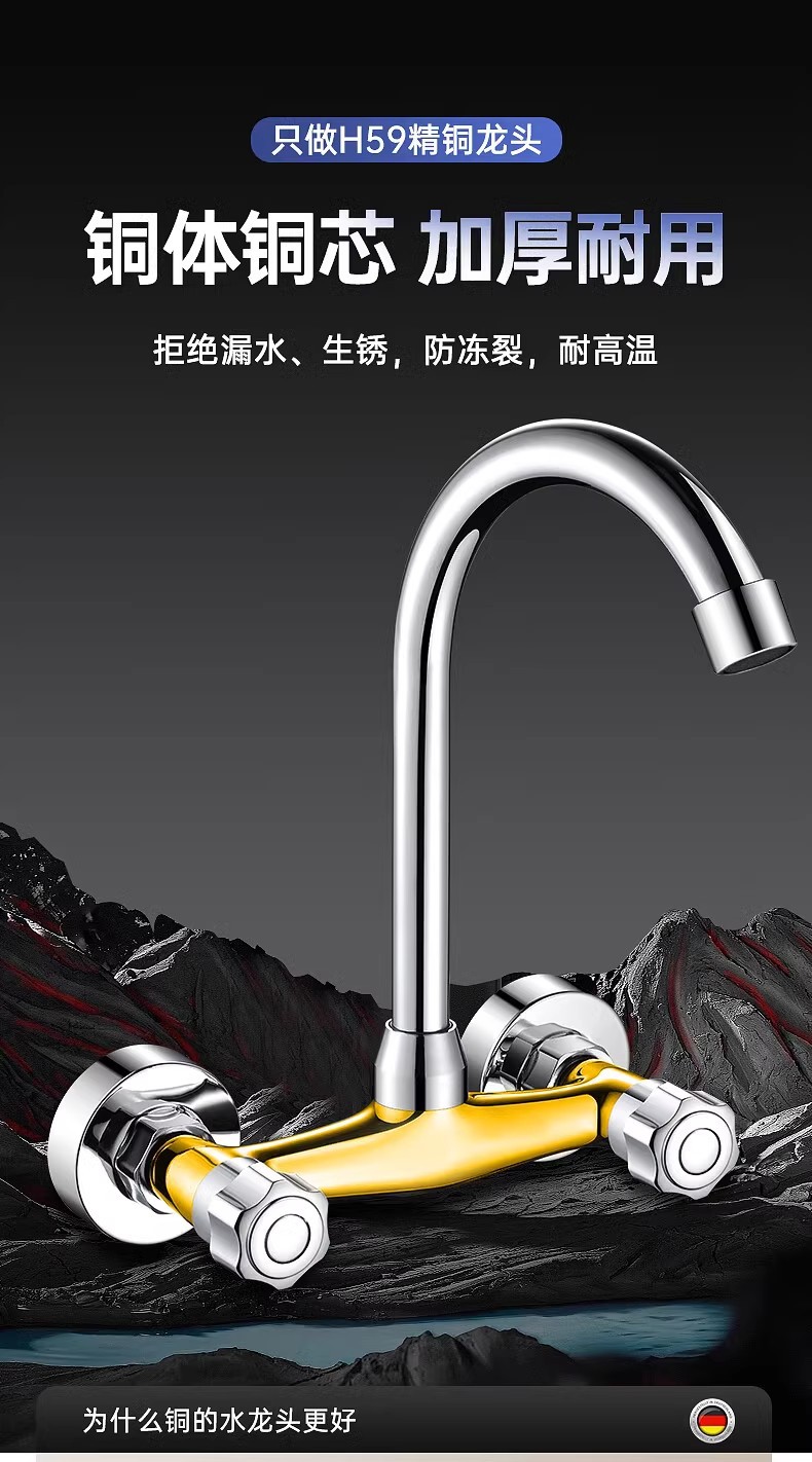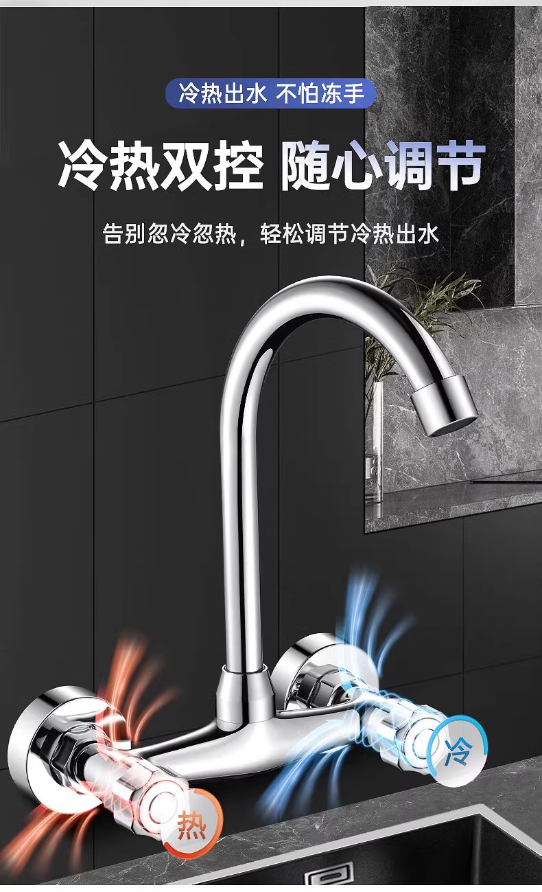 주방 싱크대 야채 분지 황동 양손 벽-뜨겁고 차가운 탭 세탁 수영장 발코니 세척 분지스토어 가기