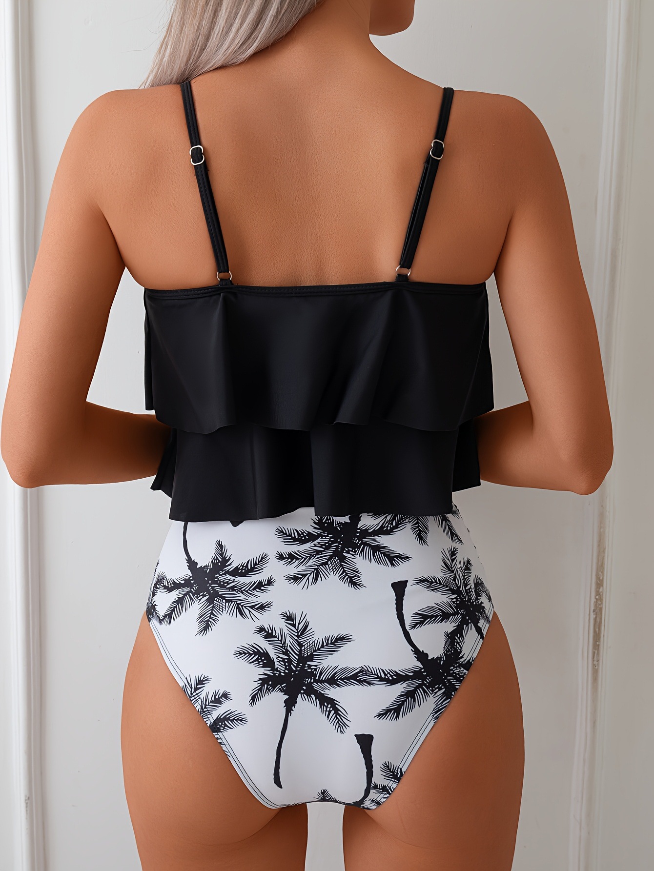 새로운 아마존 유럽과 미국의 대외 무역 순수한 검은 색 탑 분할 인쇄 높은 허리 비키니 섹시한 수영복 여성스토어 가기