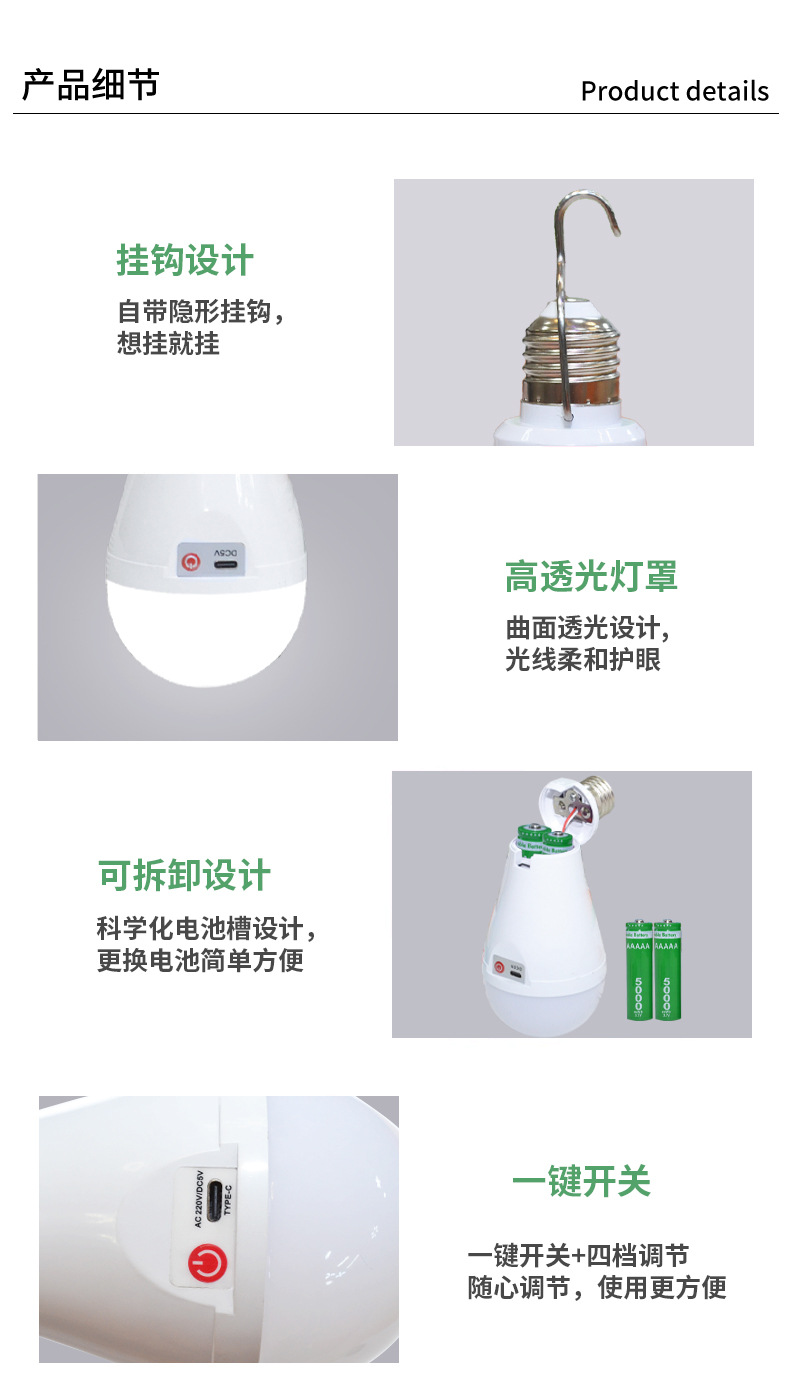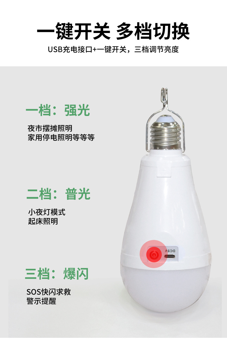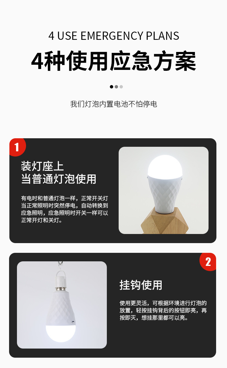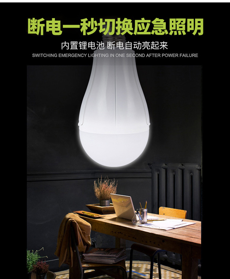 LED 비상 전구 이동식 이중 배터리 가정용 정전 조명 5V 충전식 TYpe-C 헤드 공장스토어 가기