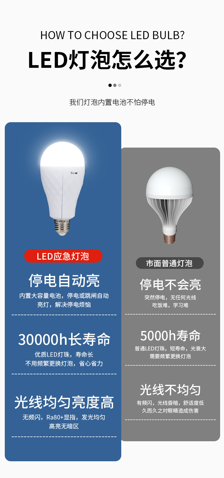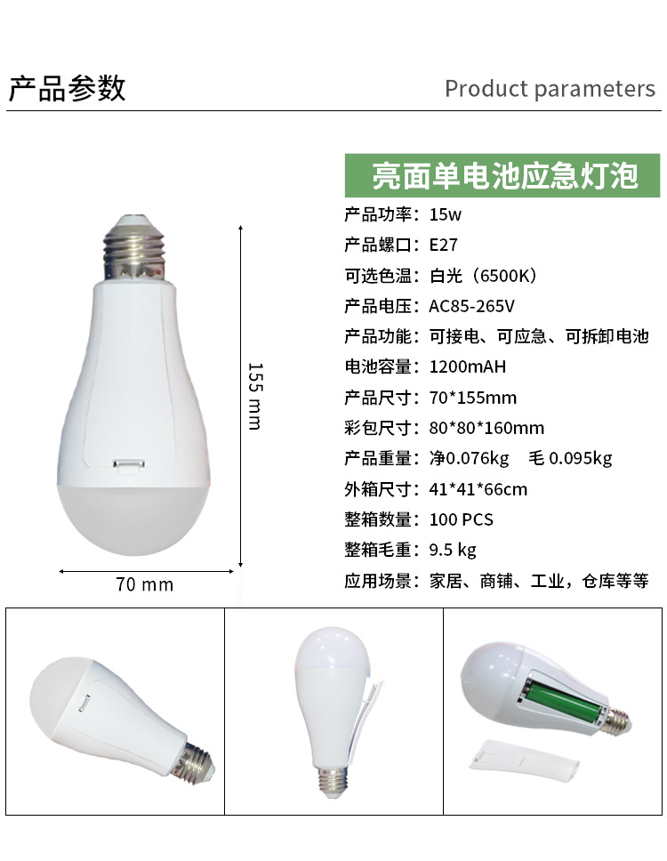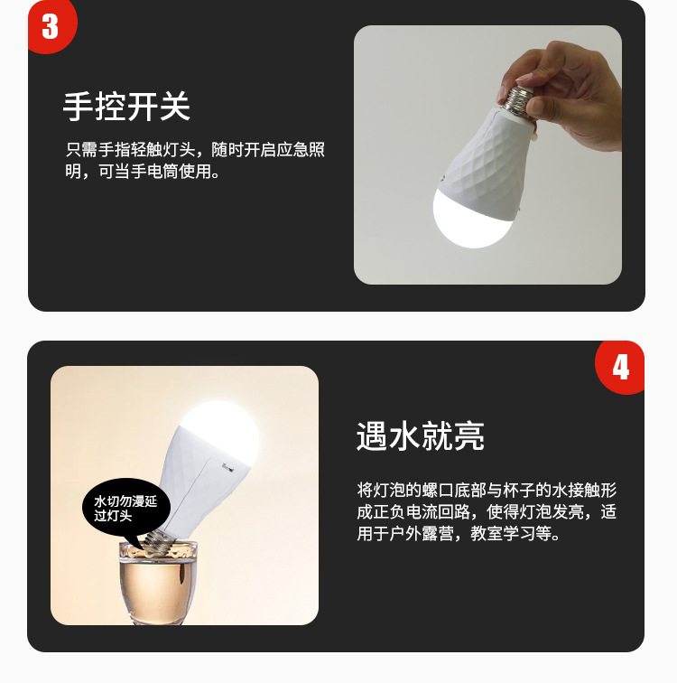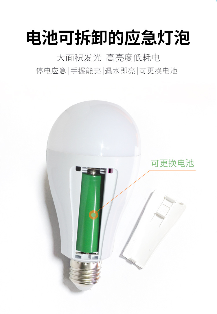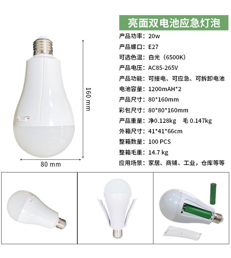 LED 비상 전구 이동식 이중 배터리 가정용 정전 조명 5V 충전식 TYpe-C 헤드 공장스토어 가기