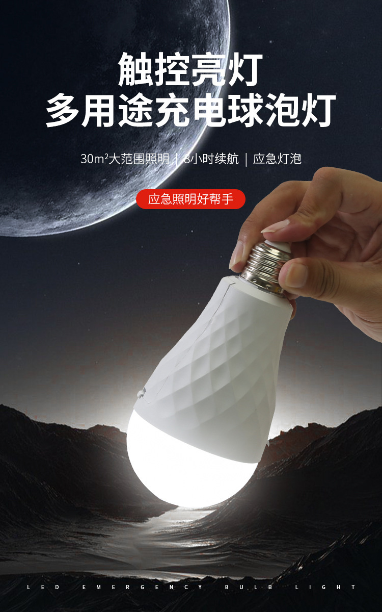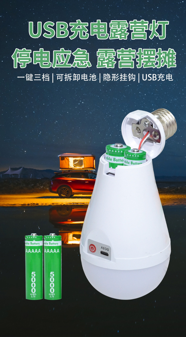 LED 비상 전구 이동식 이중 배터리 가정용 정전 조명 5V 충전식 TYpe-C 헤드 공장