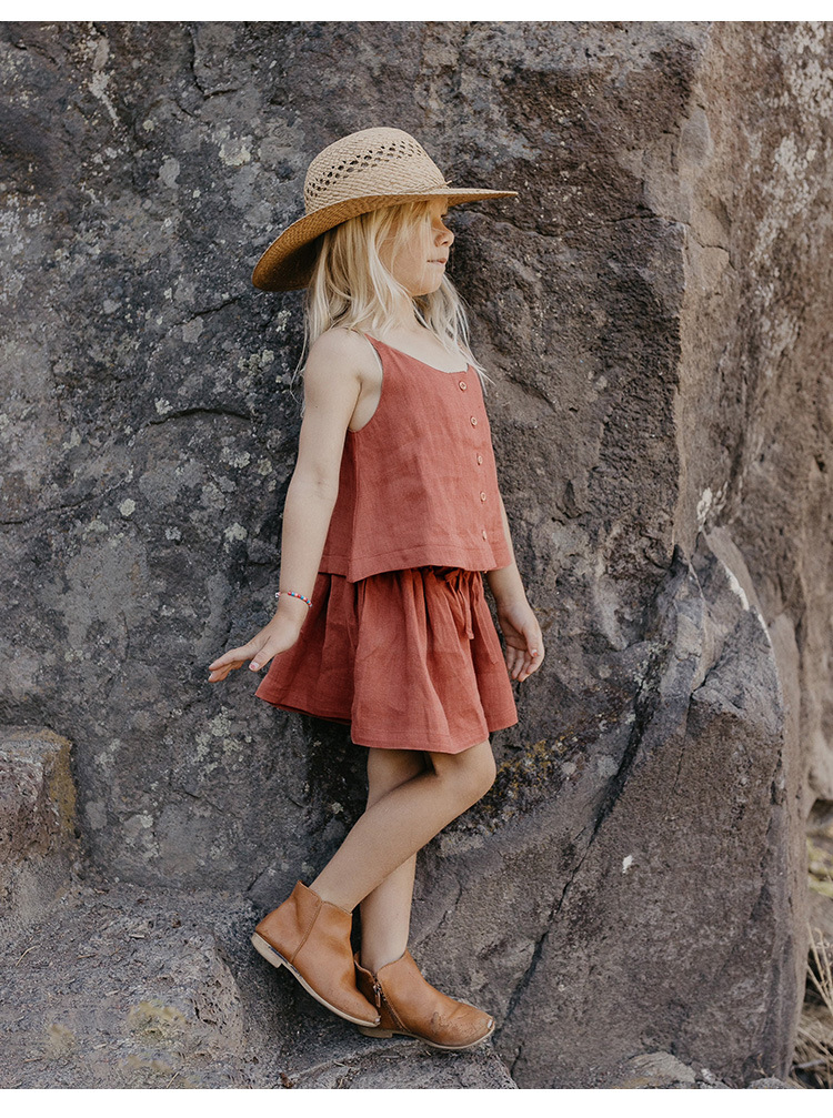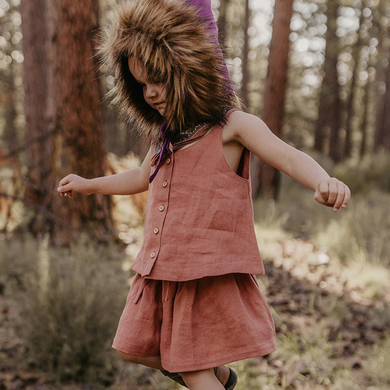 어린이 라미 코튼 세트 2025 년 여름 싱글 브레스트 미수리 슬링 탑 아동복 투피스 세트