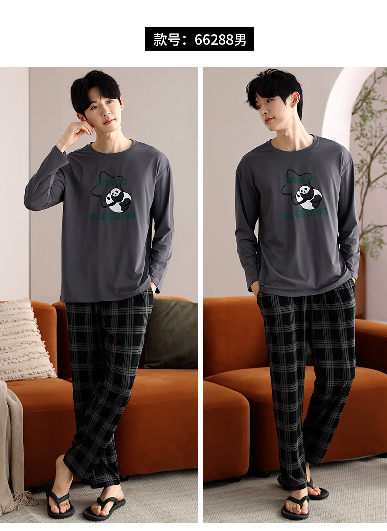 2025 면 여성 홈 의류 봄과 여름 새로운 라운드 넥 남성 의상 커플 파자마 긴 소매 세트스토어 가기