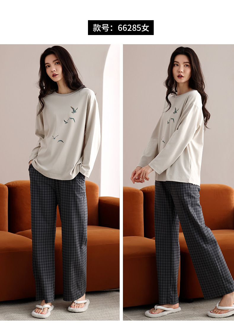 2025 면 여성 홈 의류 봄과 여름 새로운 라운드 넥 남성 의상 커플 파자마 긴 소매 세트