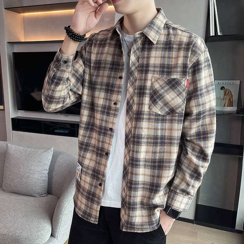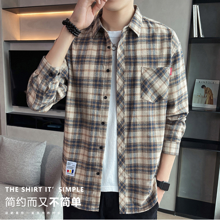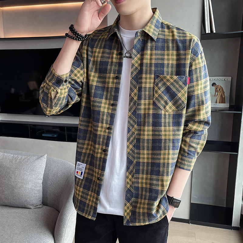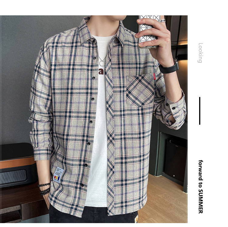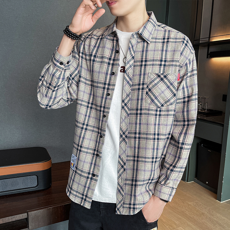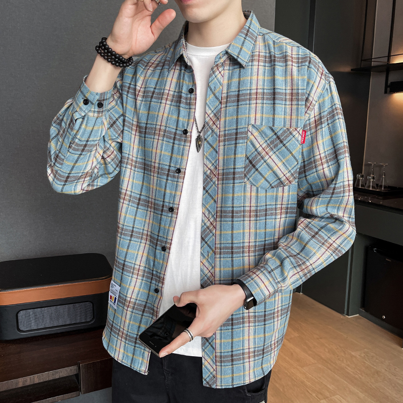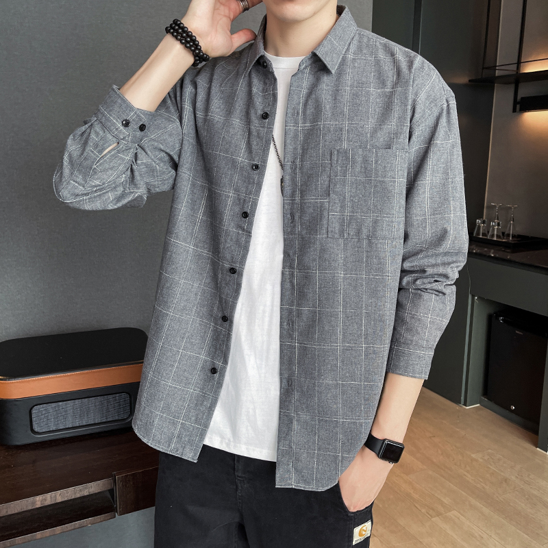 격자 무늬 셔츠 소년 봄, 가을 긴팔 탑 남성 청소년 봄, 여름 코트 캐주얼 셔츠스토어 가기