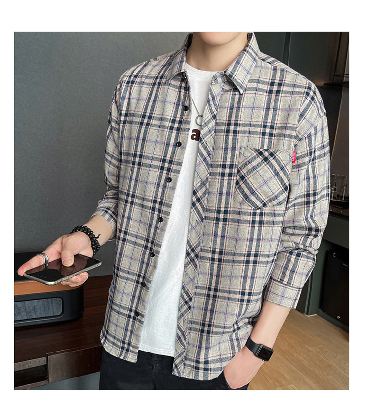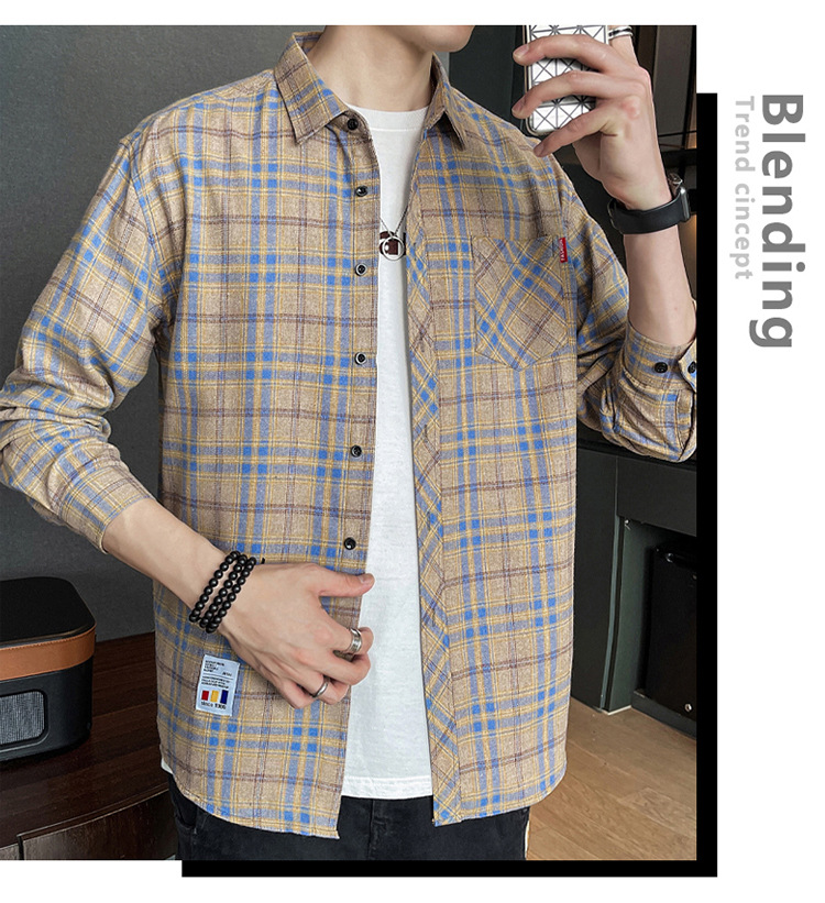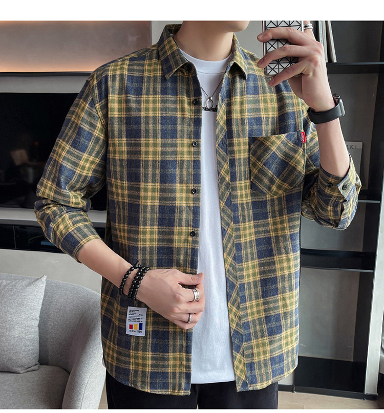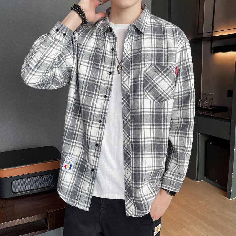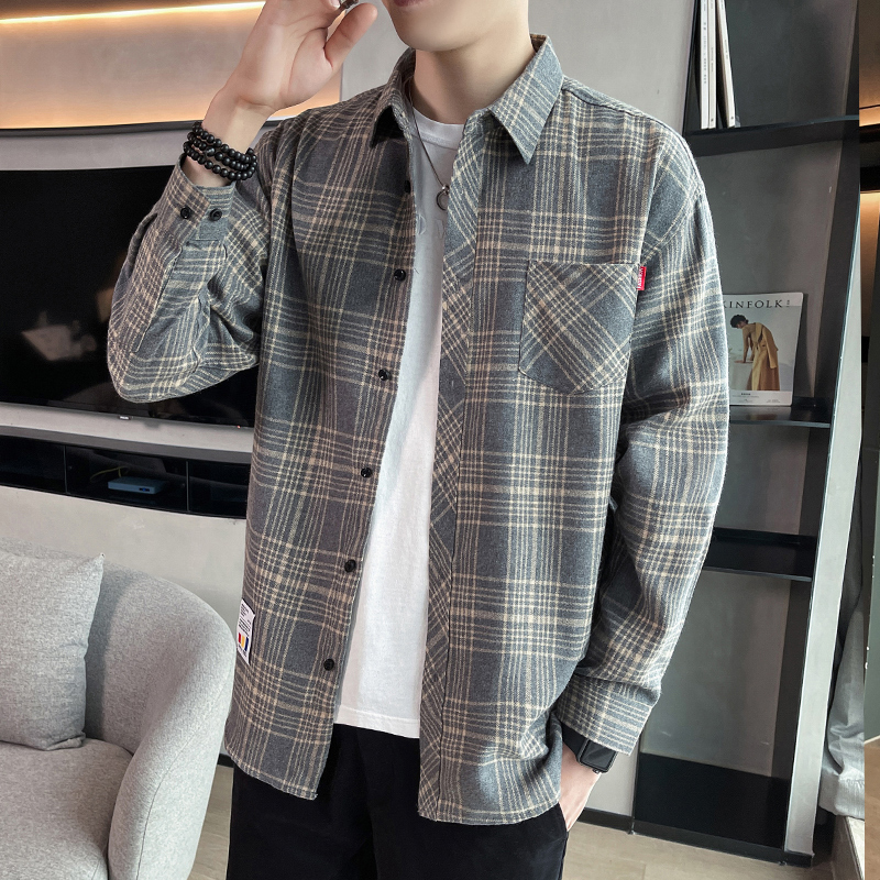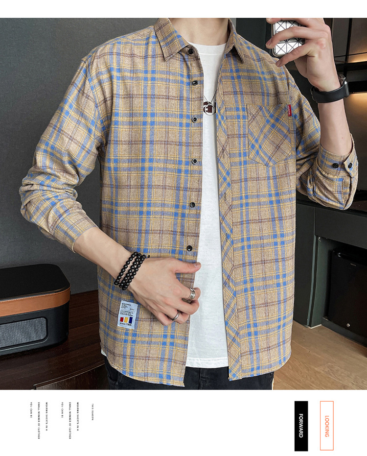 격자 무늬 셔츠 소년 봄, 가을 긴팔 탑 남성 청소년 봄, 여름 코트 캐주얼 셔츠스토어 가기