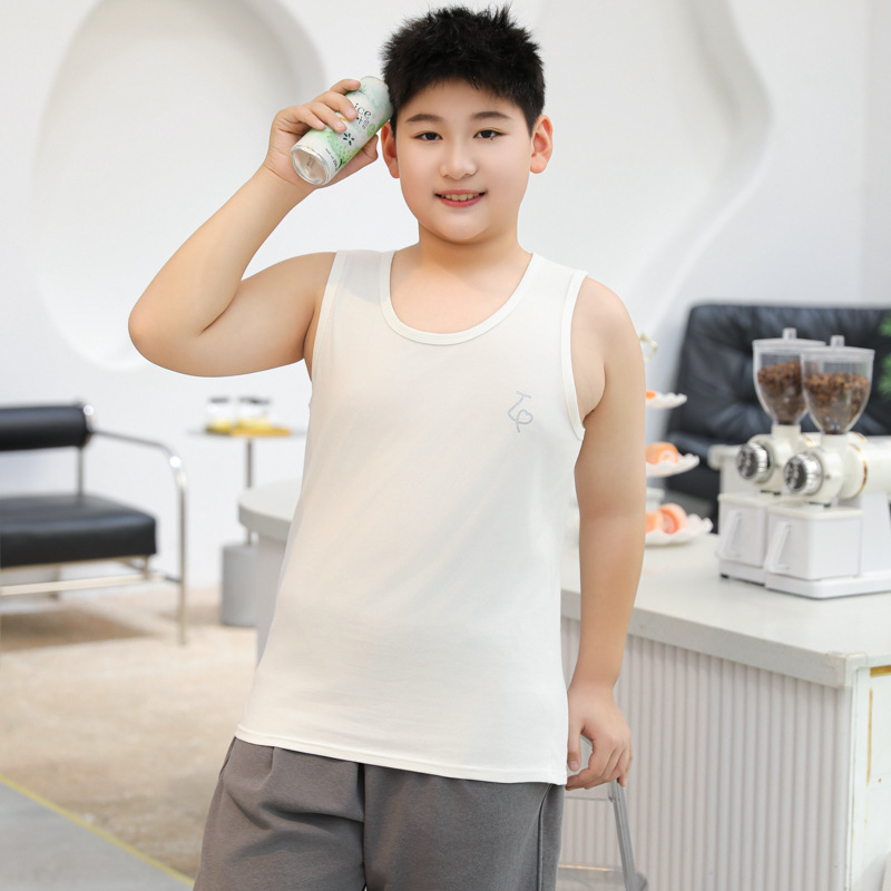 뚱뚱한 어린이 조끼 남성 큰 아이들 여름 순면 지방 플러스 사이즈 소년의 민소매 티셔츠 어린이 내복 학생베이스 셔츠