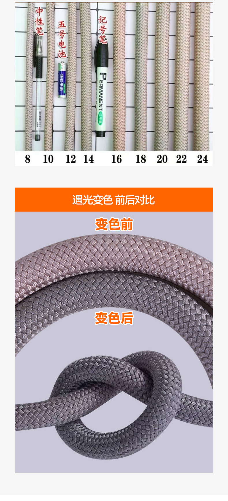 색상 변경 나일론 로프 3 층 꼰 안전 로프 공중 작업 로프 외부 벽 청소 리프팅 로프 탈출 리프팅 로프