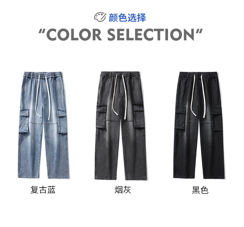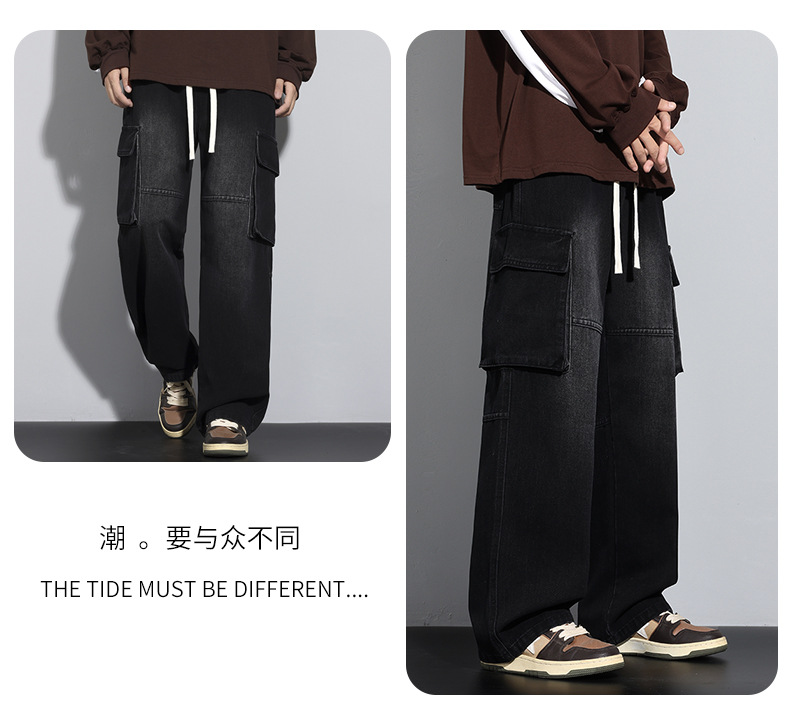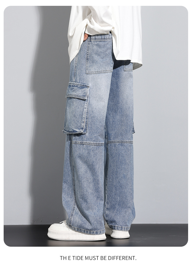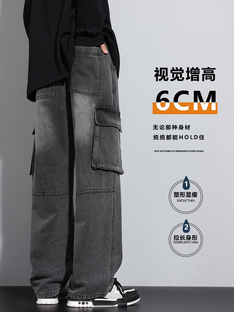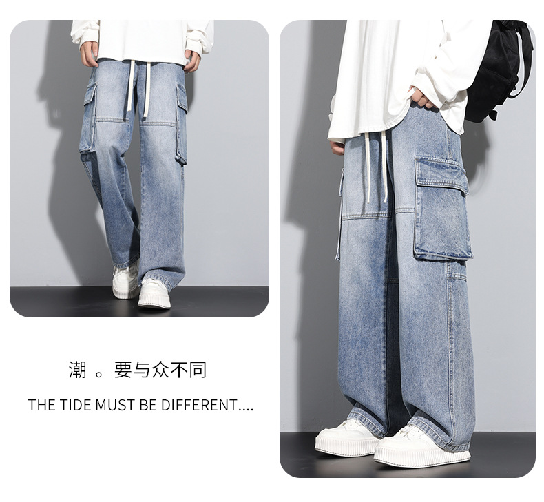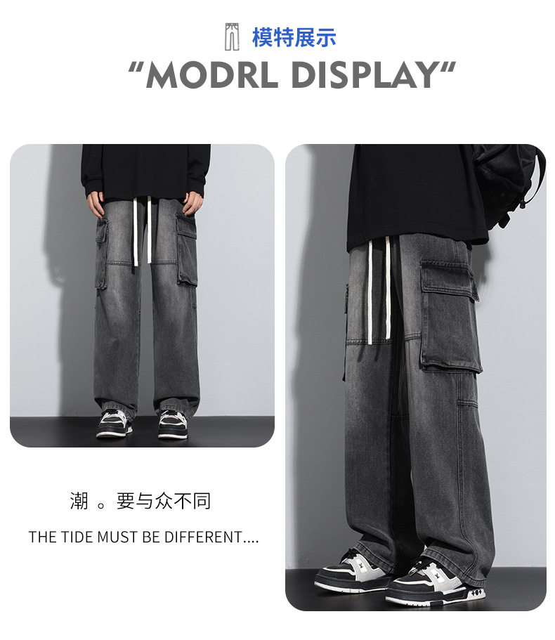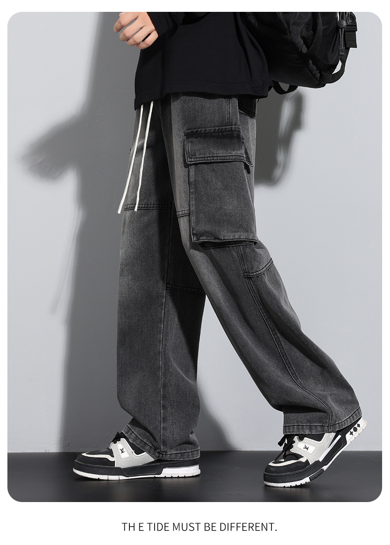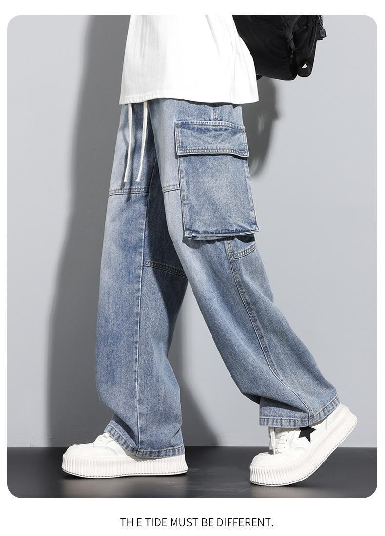 새로운 폭발 작업복 청바지 남자의 가을과 겨울 기모 두꺼운 미국식 하이 스트리트 와이드 레그 팬츠 뉴 그린 영 다이파스토어 가기