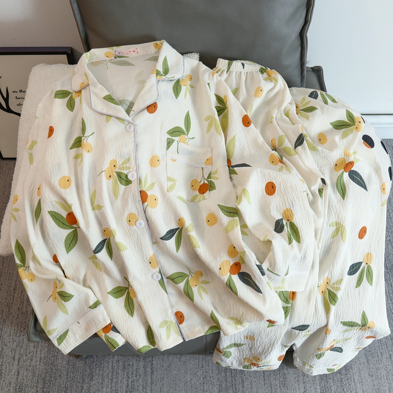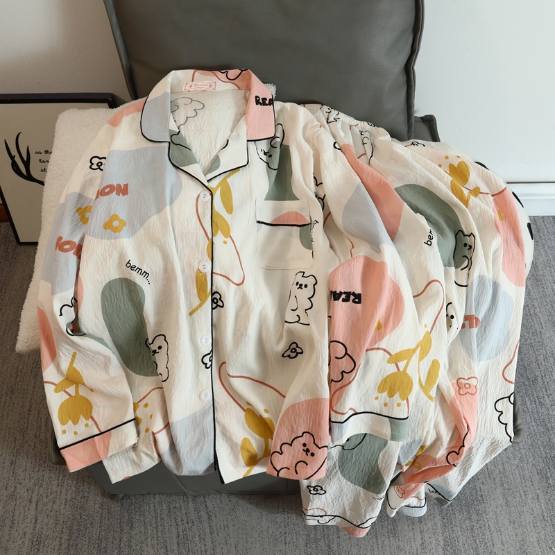 일본 꽃 잠옷 여성의 봄과 가을 새로운 구름면 귀여운 레이스 카디건 긴 소매 바지 홈 의류 세트스토어 가기