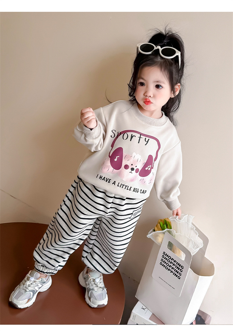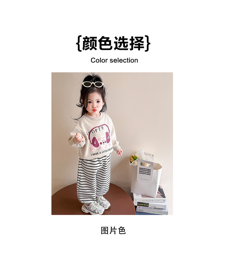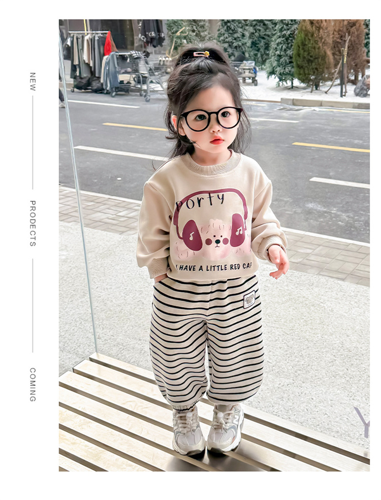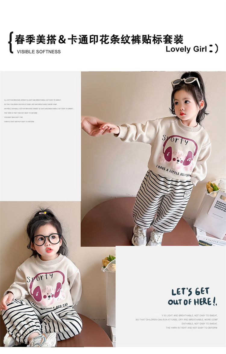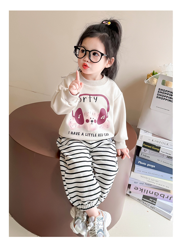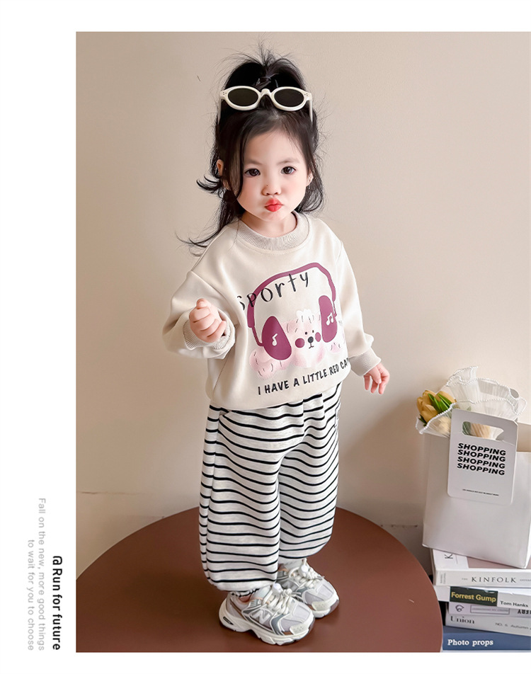 소녀 만화 인쇄 줄무늬 바지 라벨링 세트 봄과 가을 2025 새로운 패션 어린 소녀 스포츠 투피스 세트스토어 가기