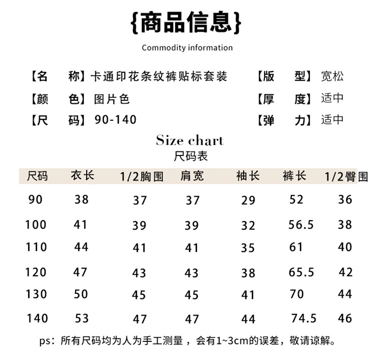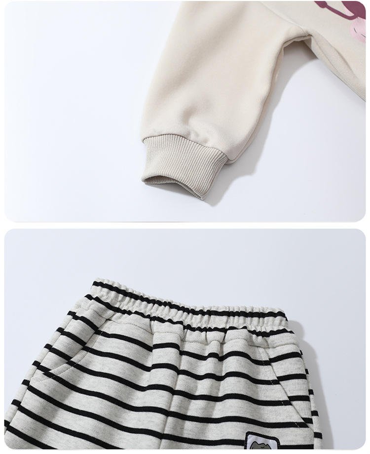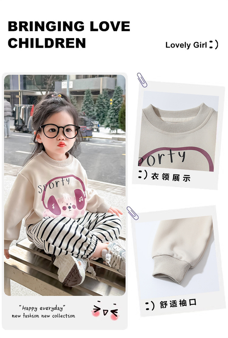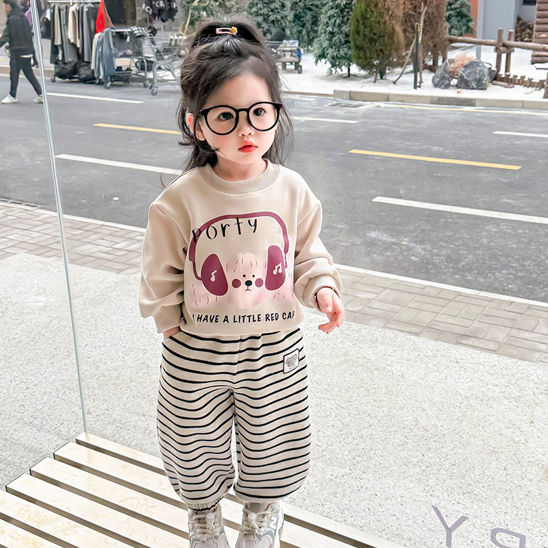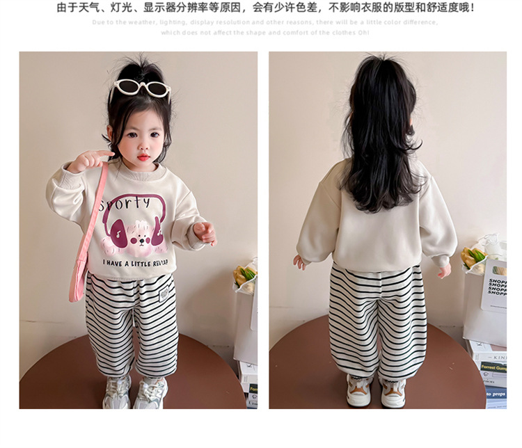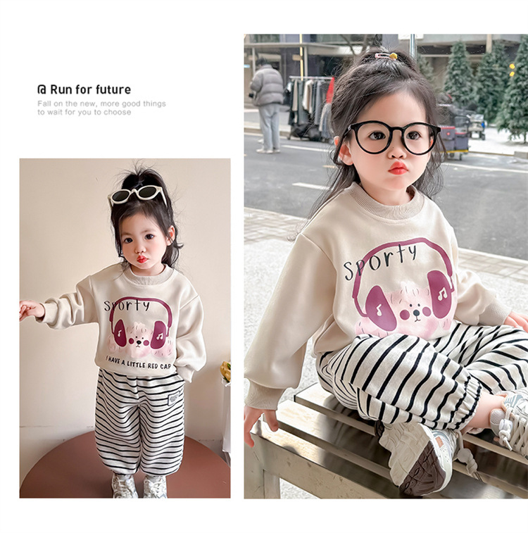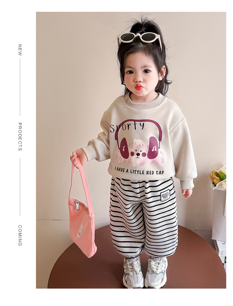 소녀 만화 인쇄 줄무늬 바지 라벨링 세트 봄과 가을 2025 새로운 패션 어린 소녀 스포츠 투피스 세트스토어 가기