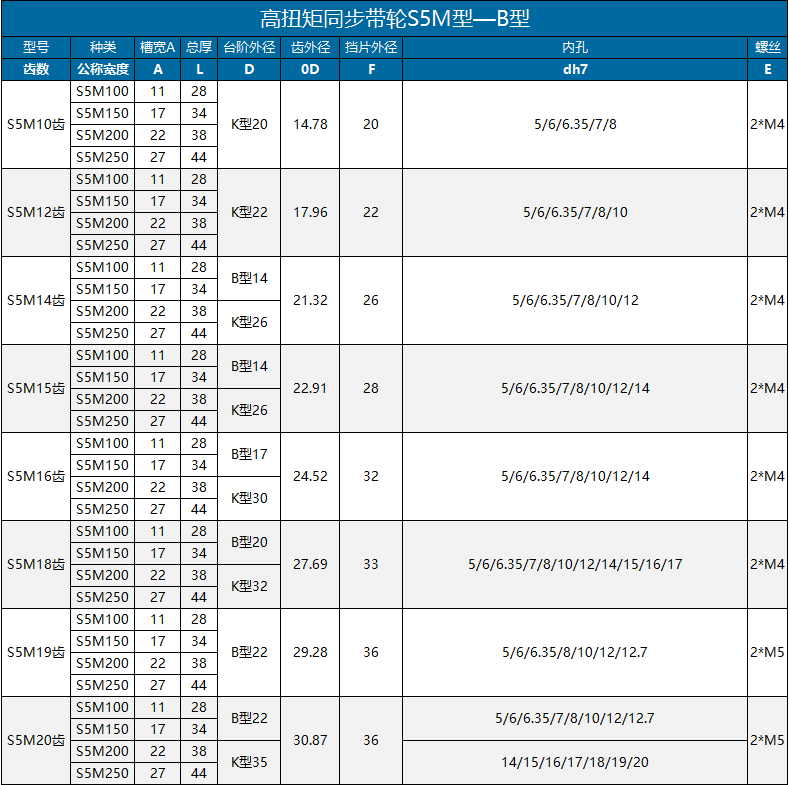 • 28개 치아-S5M-슬롯 폭 17-B-구멍 14 키 5*2.3