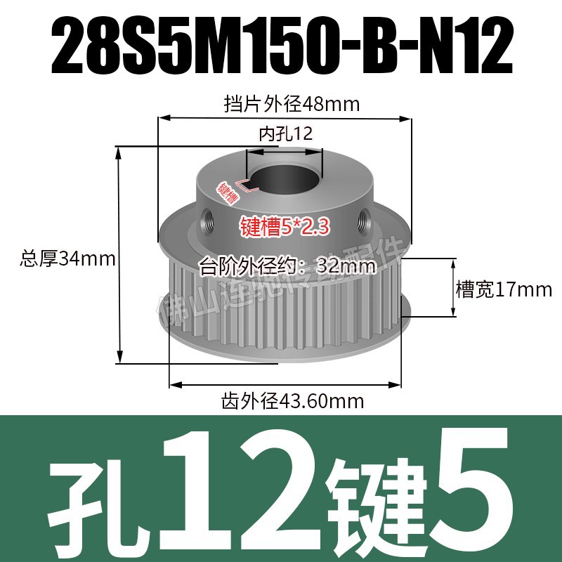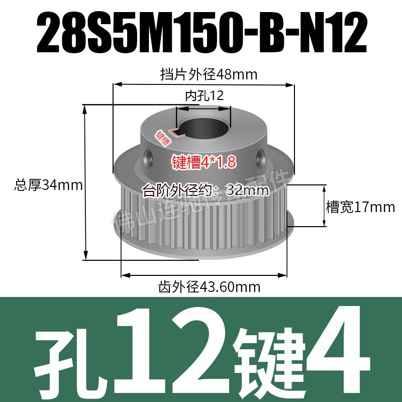 • 28 치아-S5M-슬롯 폭 17-B-구멍 12 키 4*1.8